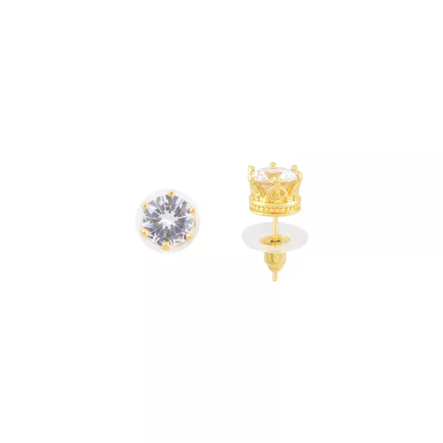 14K Gold-Plated CZ Crown Stud Earrings - 20 Gauge