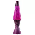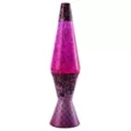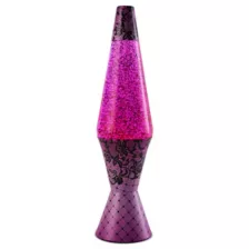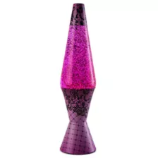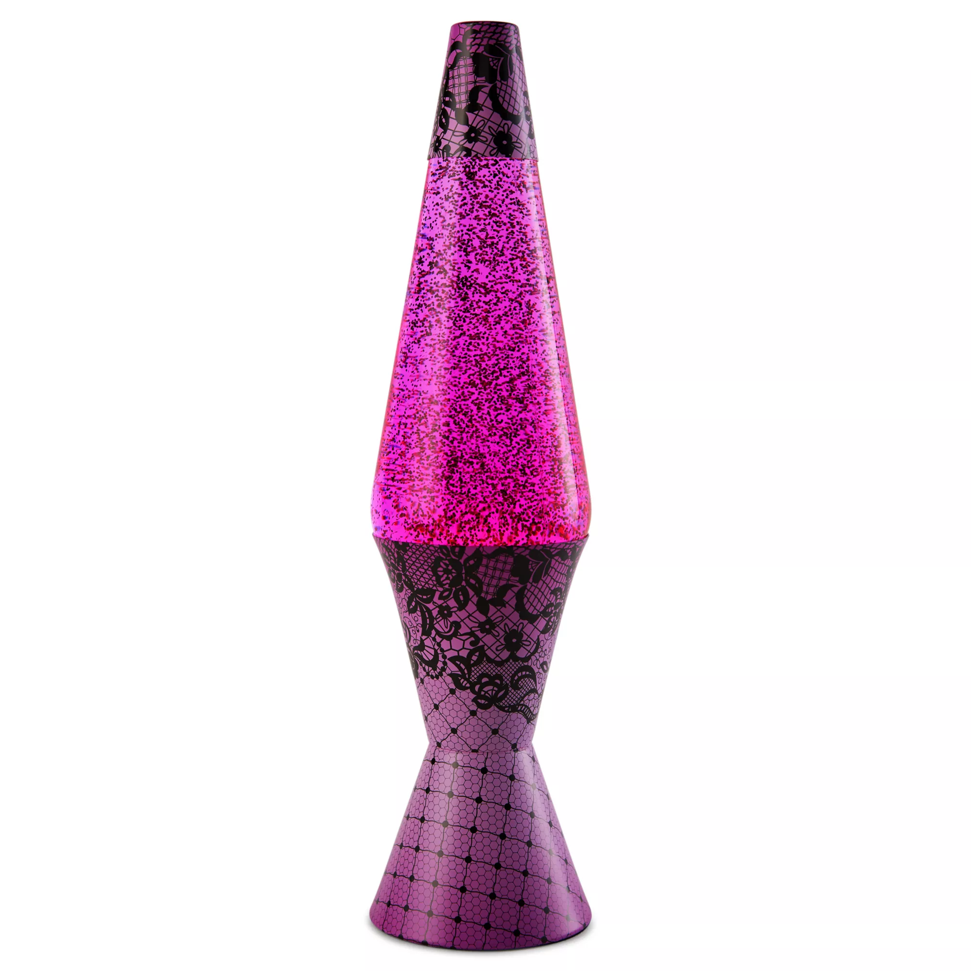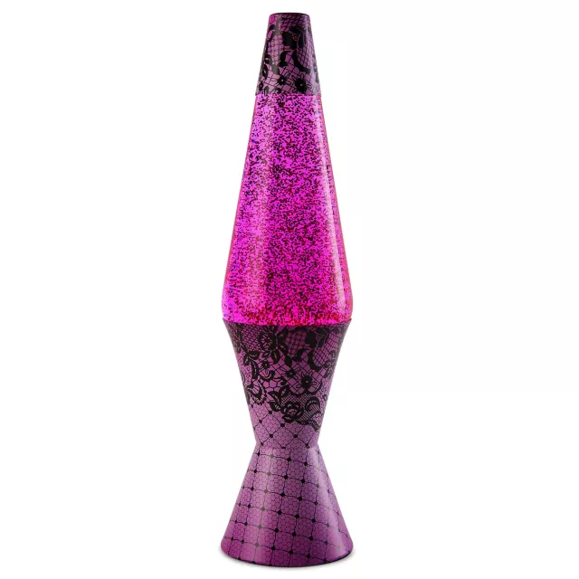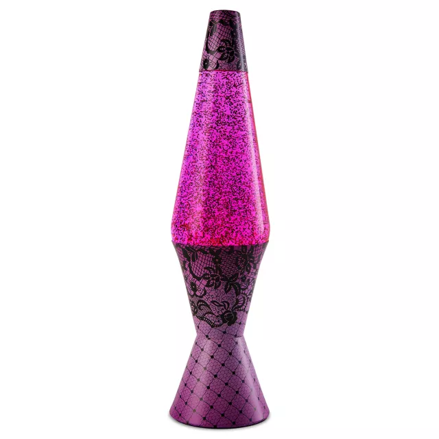 Every space needs a pop of pink. This 17" lava lamp features pink lava filled with glitter! Its cap and base are dressed up in vibrant pink printed with black lace.