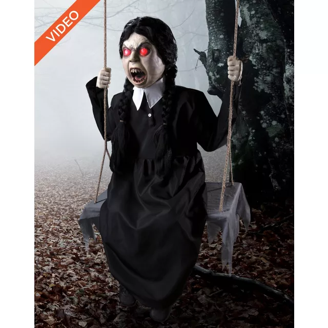 From the Tate Steinsiek Collection. Who doesn’t love an innocent little girl on a swing? Sweet little Molly loves to sing and play with friends, but she has been playing on her swing for quite some time. Don't say we didn't warn you... For if you move too close to young Molly, you’ll scream in horror as she bends backward to reveal a twisted face and a sinister laugh!