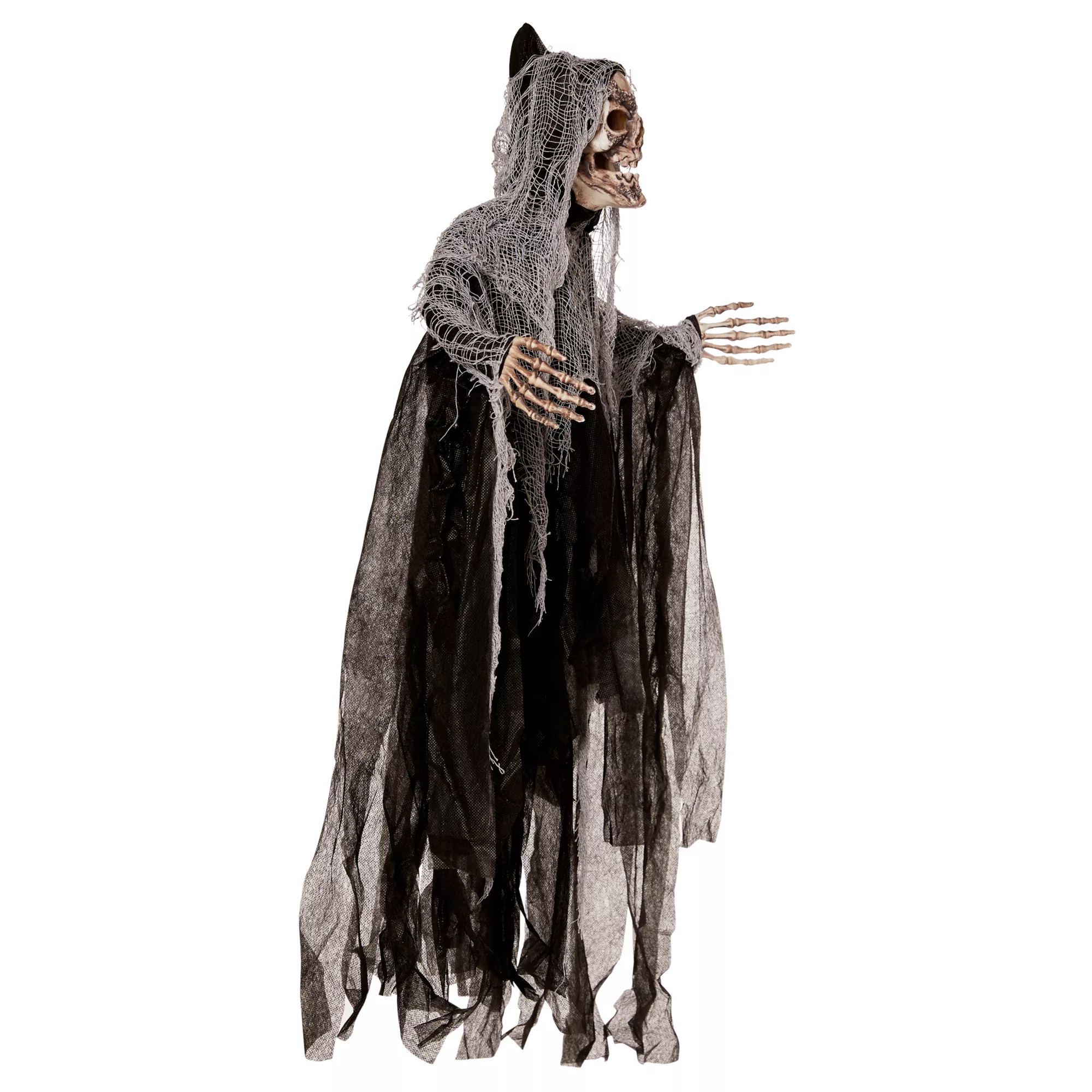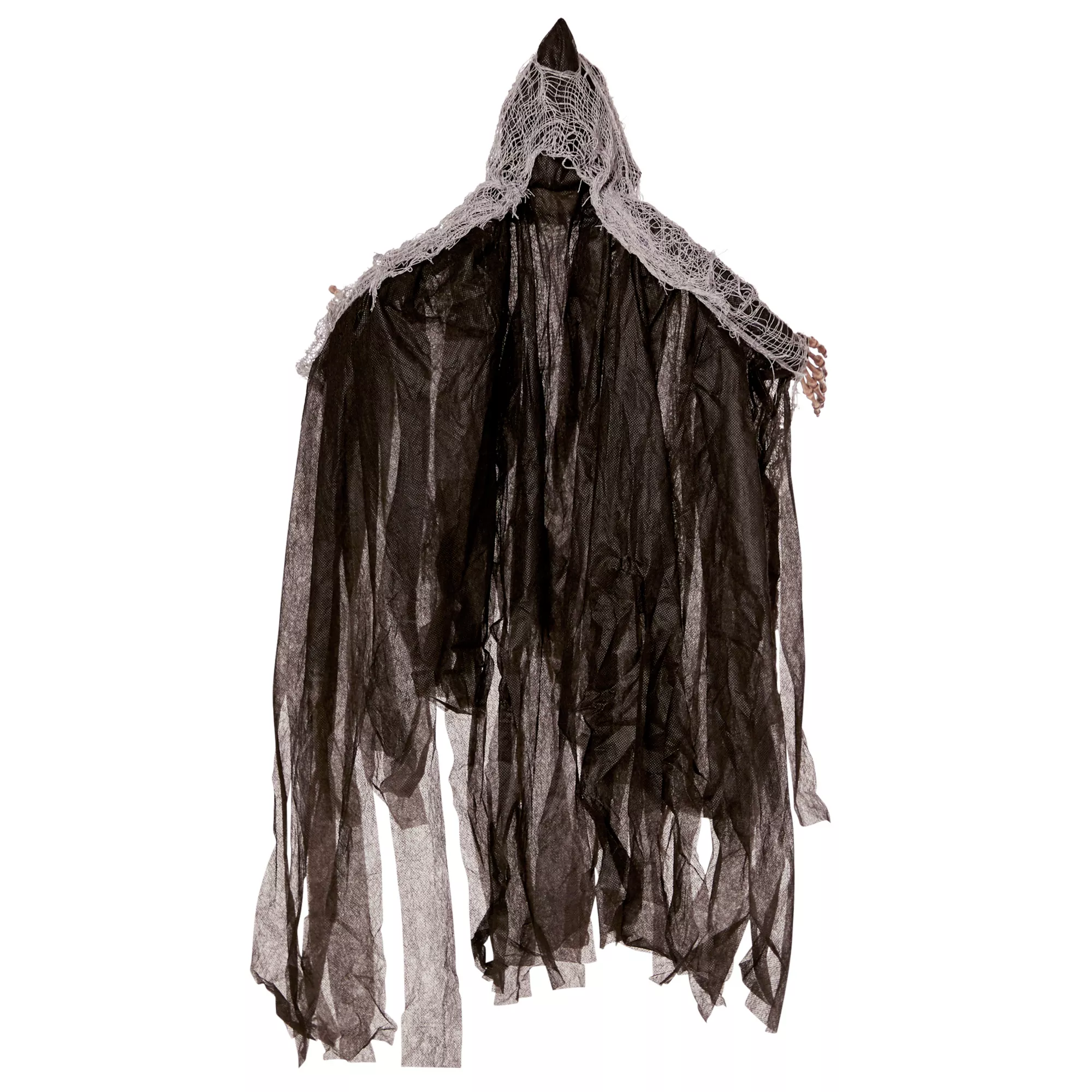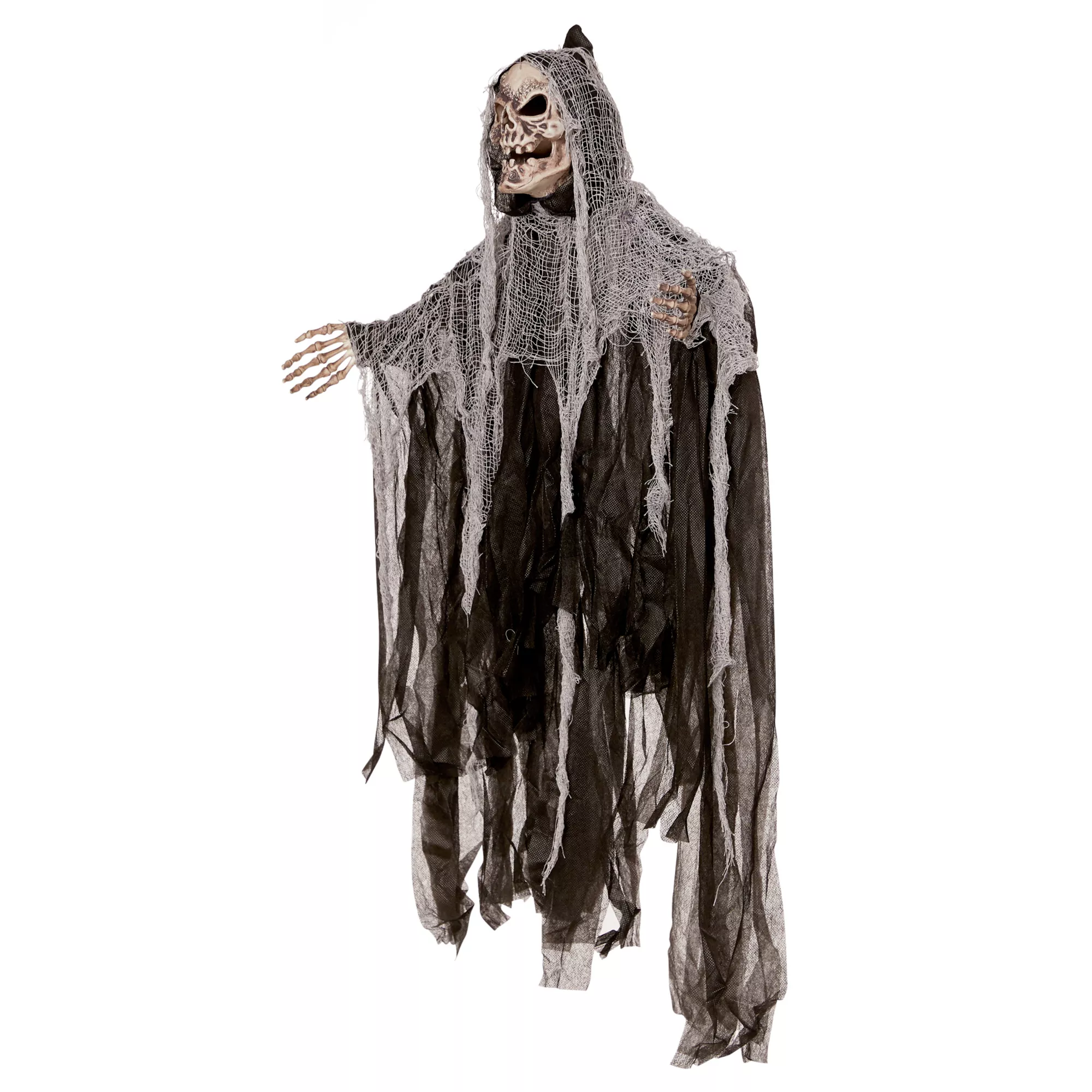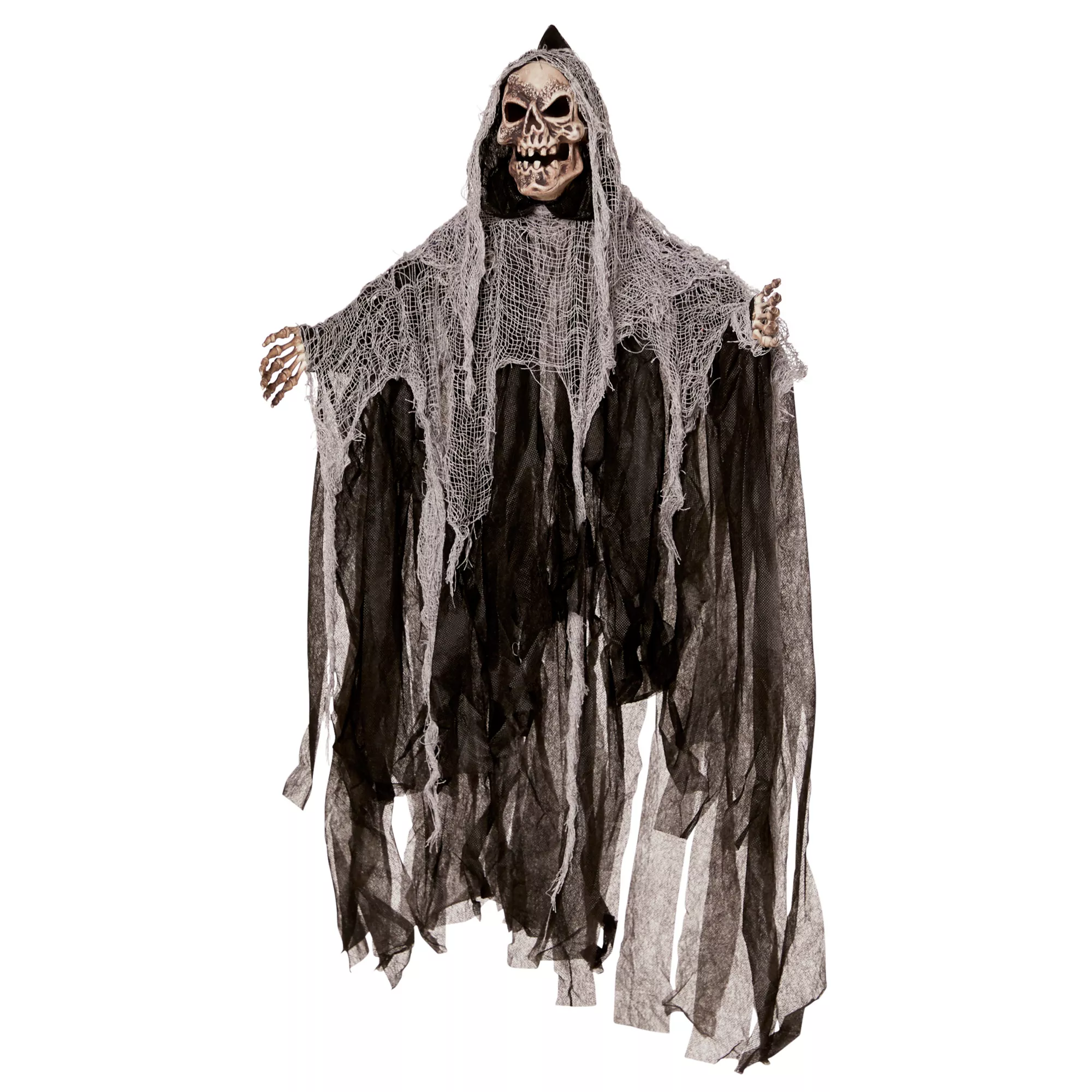 Add a bit of eeriness to your decor when you decorate with the 3' Hanging Skull Reaper. This creepy, 3-foot reaper features a skull face and grey and black tattered garb.