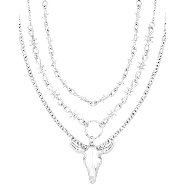 3-Row Barbed Wire Bull Chain Necklace