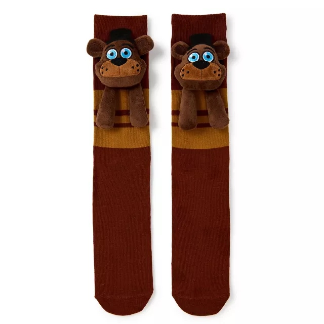 Kick your feet up and relax in these 3D Freddy Fazbear socks! Play Five Nights at Freddy's in style when you rock these crew socks.