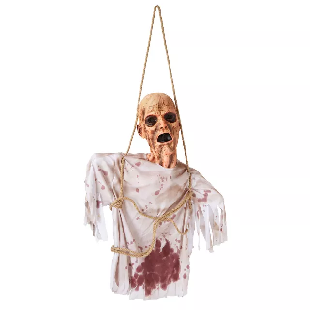 This Hanging Wretched Soul decoration is sure to spook your friends and family at the door this Halloween. This poor hanging soul looks like he's been dead and decaying on his rope for a while, patiently waiting for Halloween to come around to make his return. Add him to your home to give it some spooky vibes and you'll have a great start to a haunted house display.