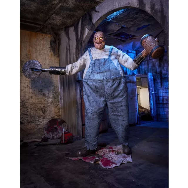 This Buzzsaw animatronic features a large mallet on one hand and a terrifying buzzsaw that spins on the other! His LED light-up eyes and left and right turning torso will have all your guests running in fear this Halloween!