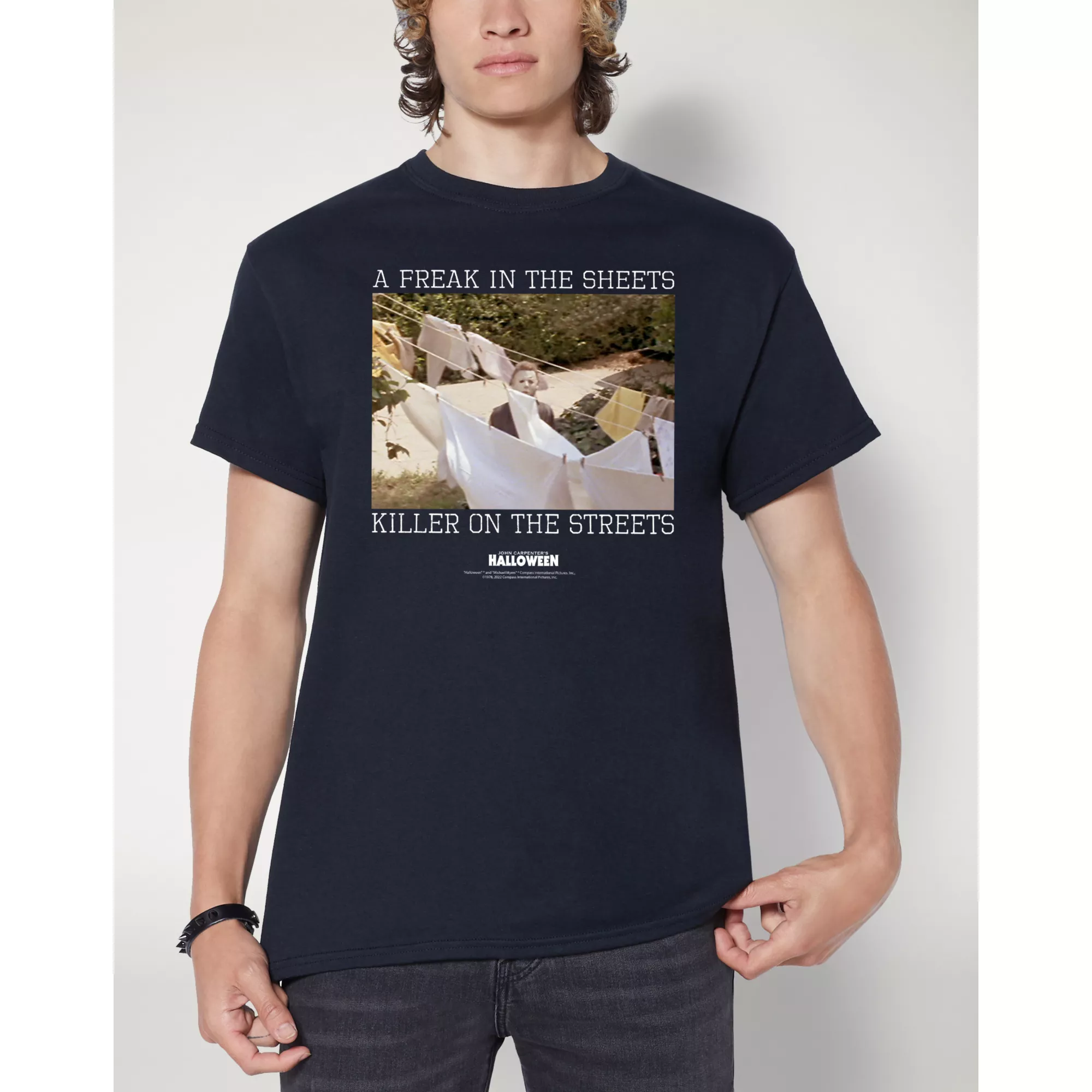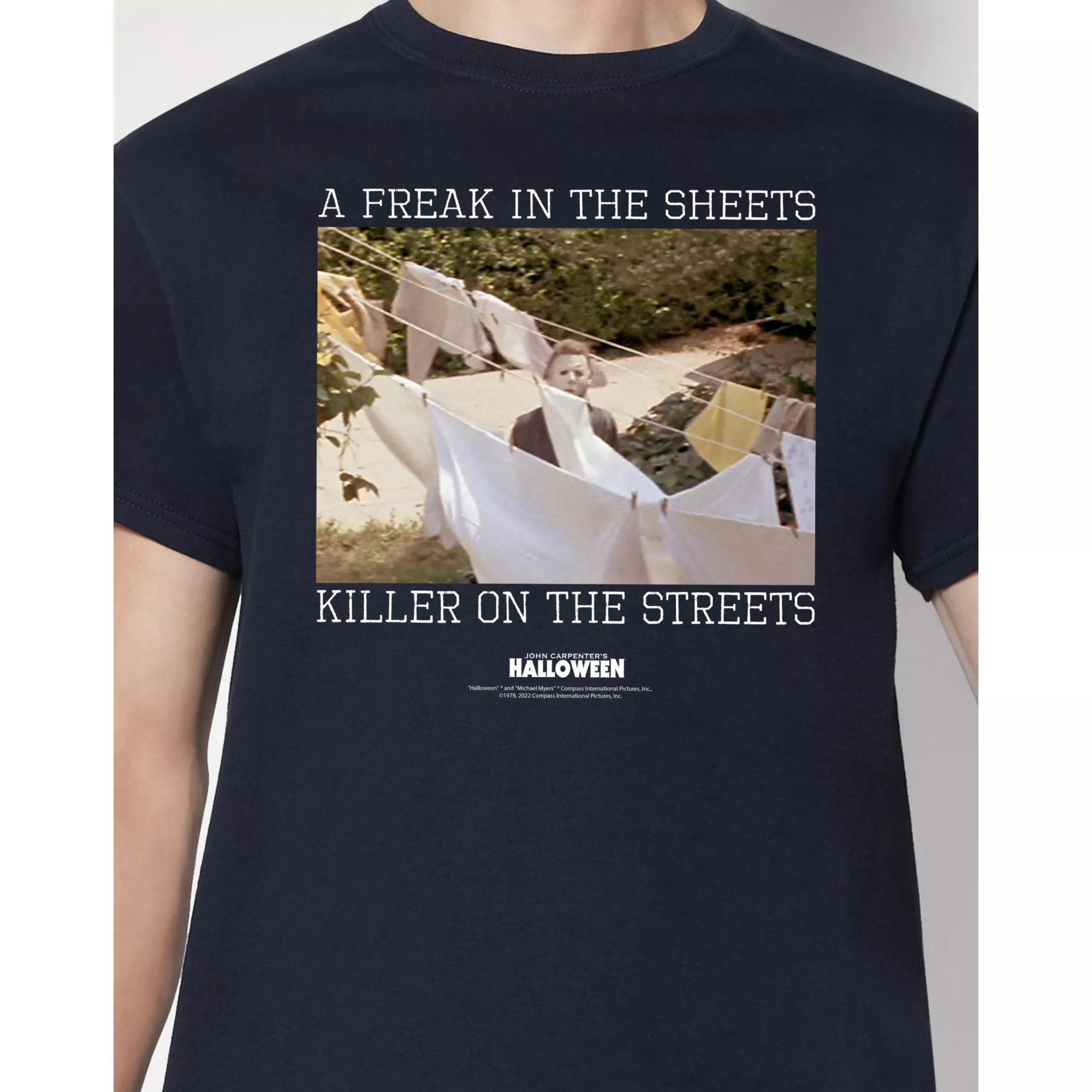 Horror movie fans, go for some dark humor and show off your taste in horror flicks with this officially licensed A Freak in the Sheets Killer on the Streets Halloween T Shirt. Suit up in this stylish tee and you’ll always be showing your fandom.