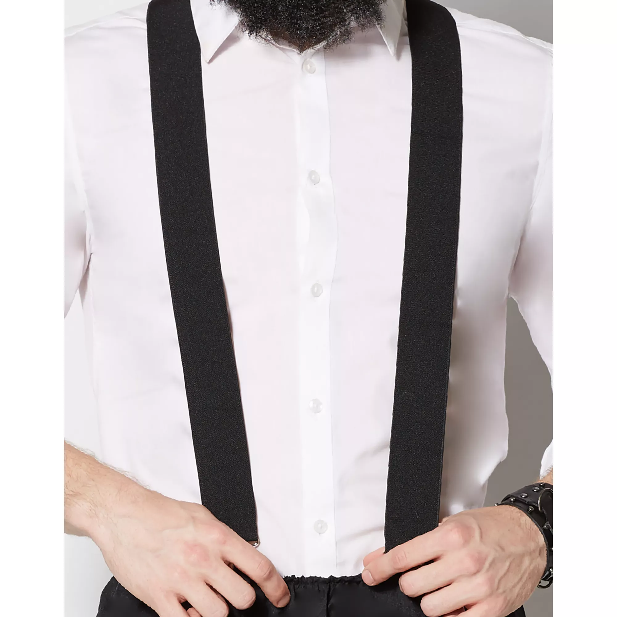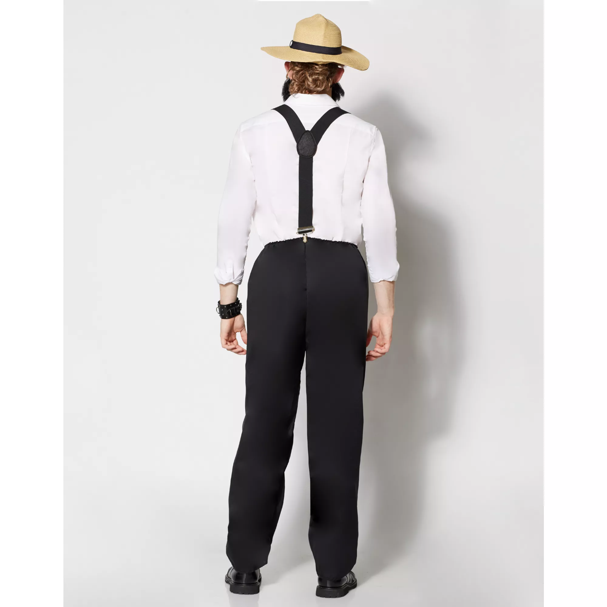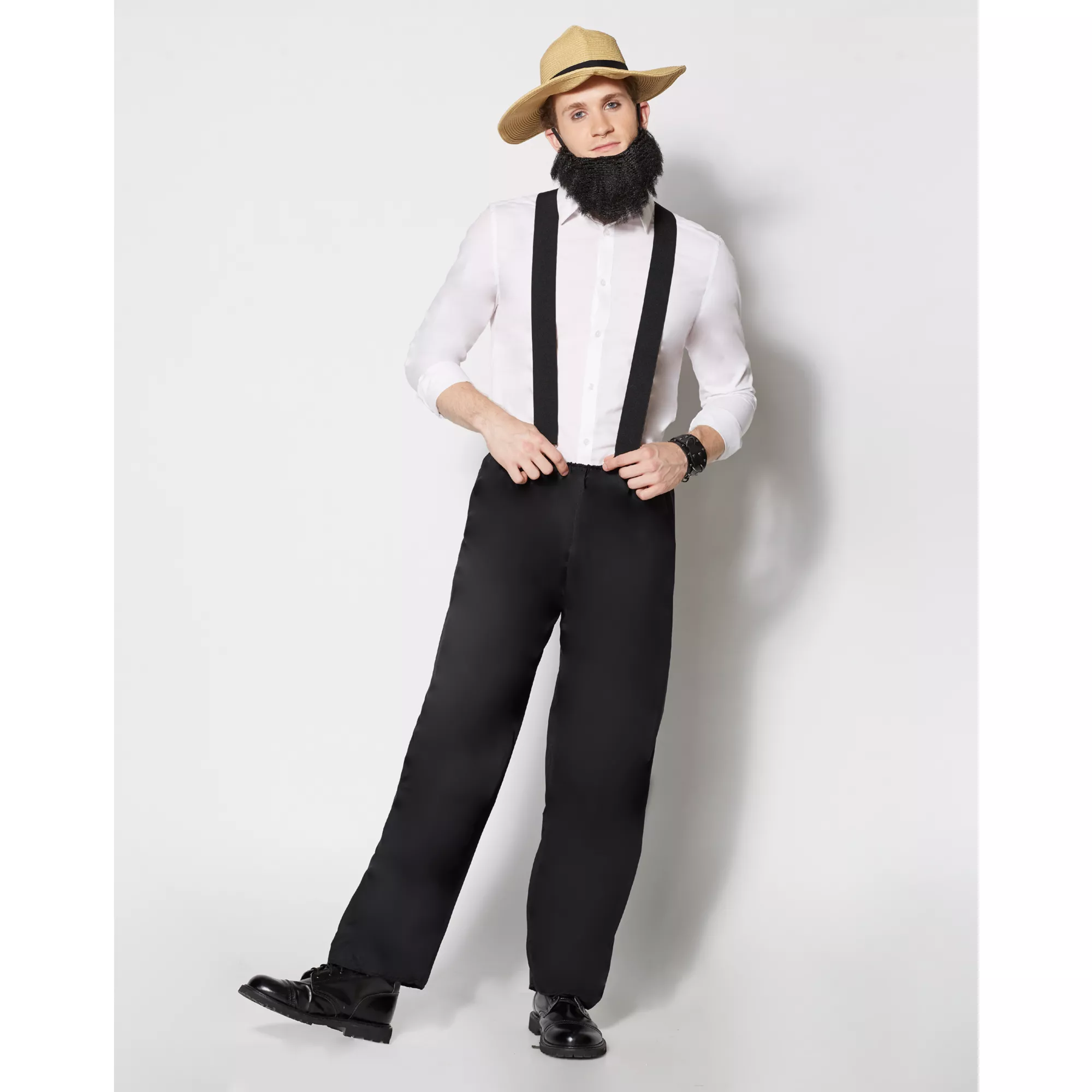 Intimidate your way to the top on Halloween when you wear the Amish Mafia Adult Men's Costume. This pair of black pants comes complete with suspenders, hat and a dark beard.