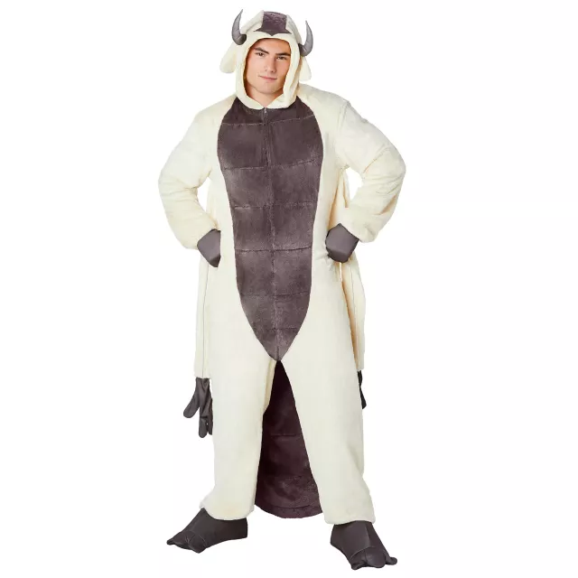 Enter the world of Avatar: The Last Airbender in this Appa jumpsuit! This costume features a head-to-toe plush design that will transform you into the remarkable sky bison. Featuring a brown and white union suit with an attached horned hood, this Appa costume is out of this world!