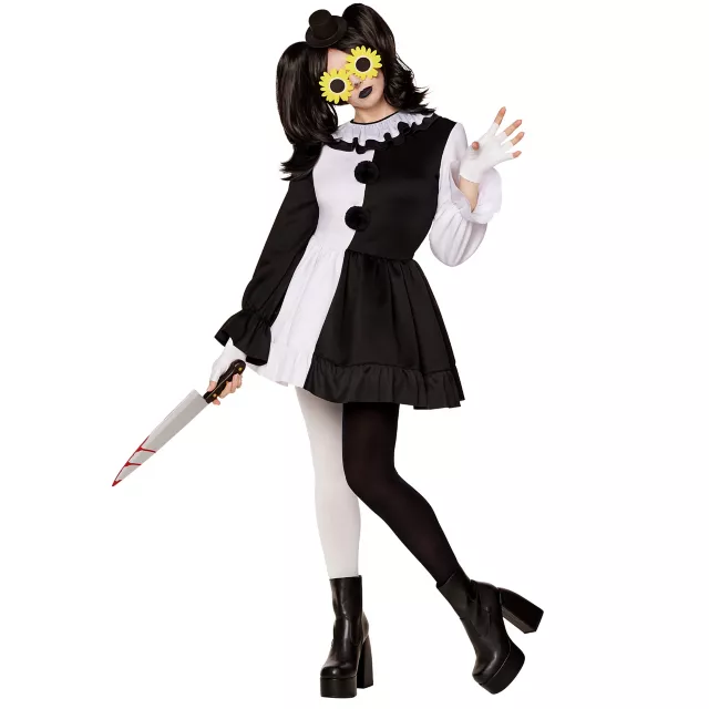 Have one of the most terrifying looks at the next costume party when you show up rocking this officially licensed Classic Art the Clown Dress Costume. With this clown costume on, you'll be ready to get into plenty of terrifying clown business. Use the included black and white dress, collar, gloves, headband, tights and sunglasses to transform into the infamous Art the Clown and prepare for the screams!