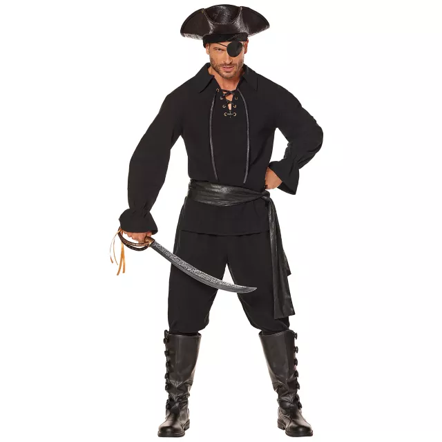 Set sail on your next adventure with this swashbuckling Black Pirate Shirt and Belt! With its convenient pullover style, this shirt will have you out the door and ready to sail the seven seas in no time. Assemble your crew and get ready to say "AAAAARGH"!