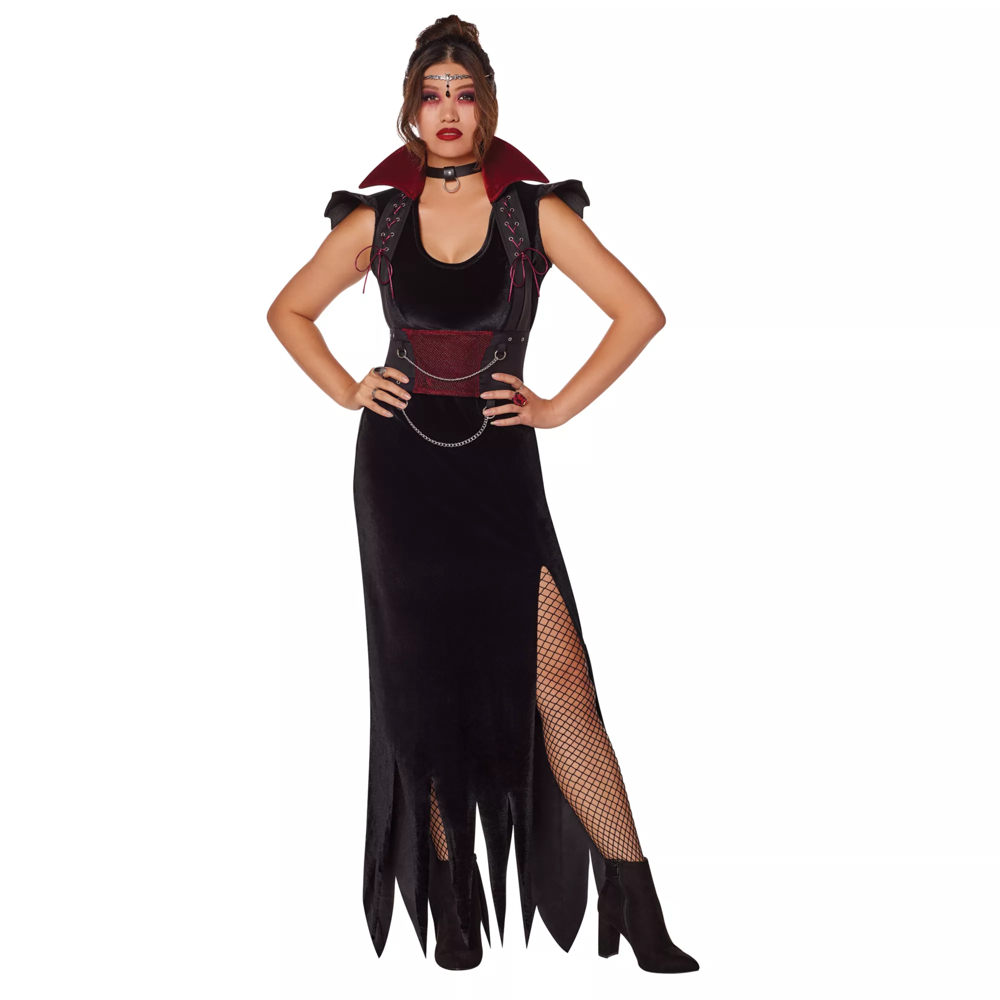 Become a bloodthirsty nightcrawler when you put on this incredible vampire costume! Featuring a gothic-style dress, a vest with an attached collar, a choker and a headband, this costume is sure to turn heads at your Halloween party.