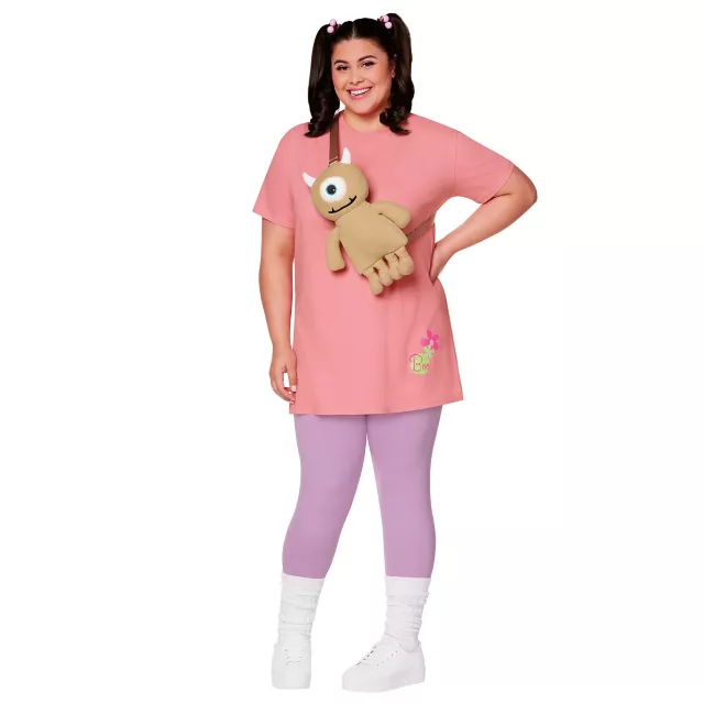 Big fan of Monsters Inc.? Prove it when you wear this officially licensed Boo Costume to your next Halloween celebration! This set includes a shirt, leggings, a crossbody bag, and a headband to give you the character's signature pigtails. Channel Boo's charm and mischievous spirit this Halloween!
