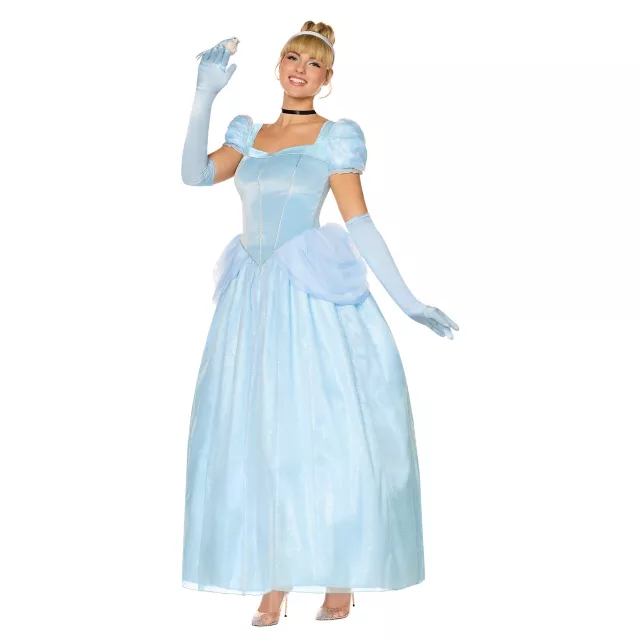Be the best dressed princess at the ball this Halloween when you arrive dressed as Cinderella. Become this classic Disney princess with the included enchanting blue dress, matching gloves, headband, and choker to finish your princess transformation. Dress as this princess for Halloween and you'll look ready to bring your Cinderella story to life.