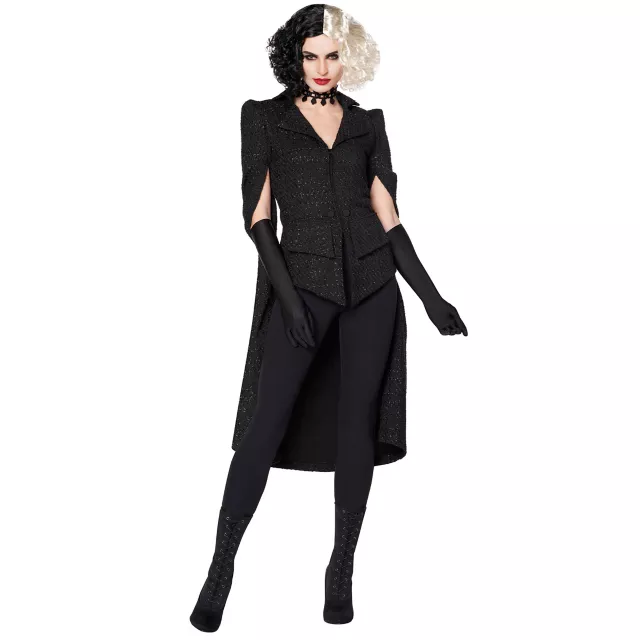 You'll look like the most evil fashionista in the world when you put on this Adult Cruella De Vil Costume. This costume includes Cruella's signature cape jacket, as well as a pair of black gloves and a choker. Cruella might be cruel, but she certainly has some style!