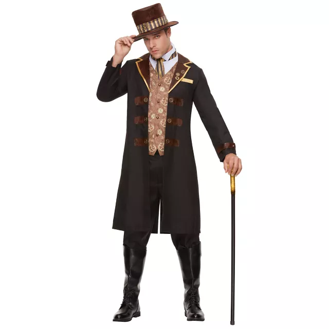 You're sure to have one of the most dapper looks at the costume party this Halloween when you show up sporting this Adult Dapper Steampunk Costume. Featuring a steampunk jacket with vest, fancy collar, tie, and a steampunk hat, this costume is just the outfit you need to fit in at any steampunk con. There's no doubt that while wearing this steampunk costume you'll look just like a fancy gentleman straight from the Victorian era with just enough of that steampunk flair.
