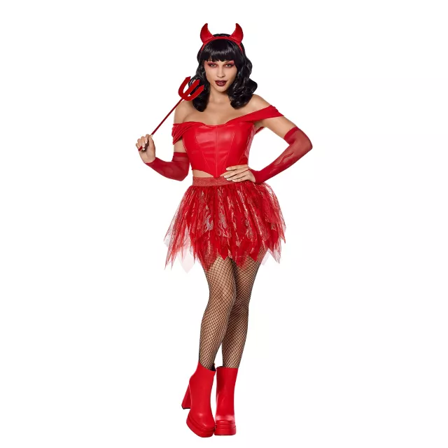 The easiest way to pull off a devilish look this Halloween is by getting this Devil Costume Kit. Featuring a red skirt, a devil horn headpiece, and a pitchfork, this kit will instantly transform you into Satan itself. Embrace your inner Lucifer all Halloween long!