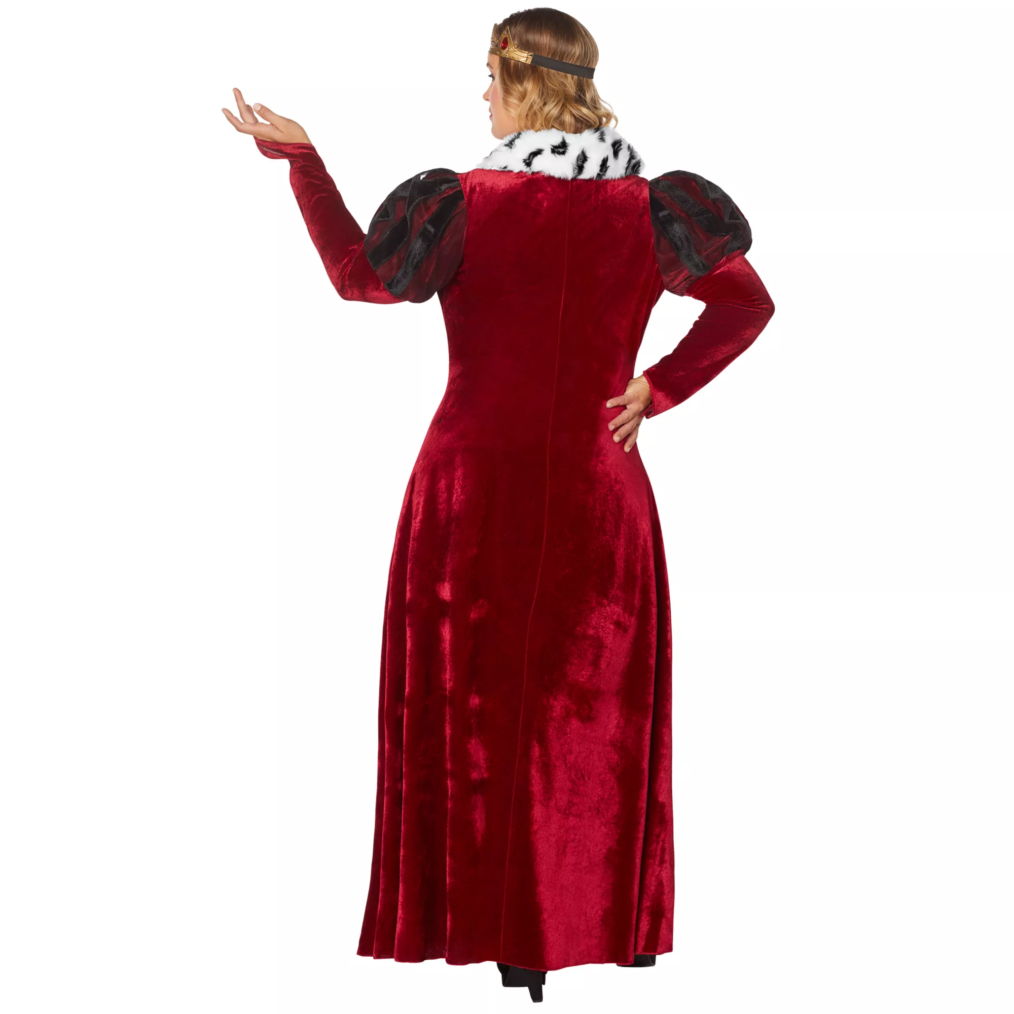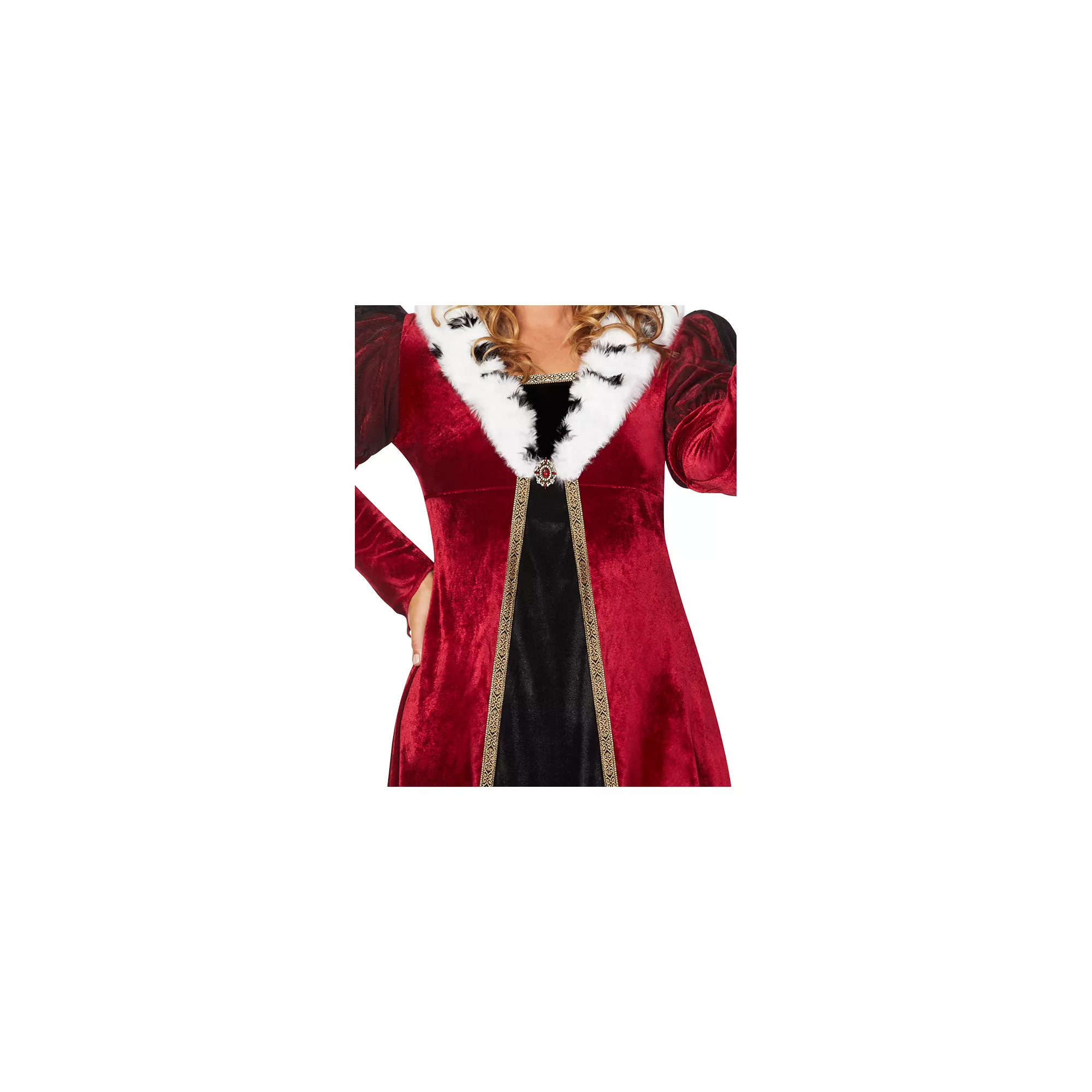 The Queen has arrived! You’ll look like you’ve stepped directly out of a storybook in this Adult Fairy Tale Queen Costume! A ruby red crown and brooch perfectly complement a long, royally red dress with puff sleeves and a soft black and white neckline. All you need to complete this look is a gold throne!