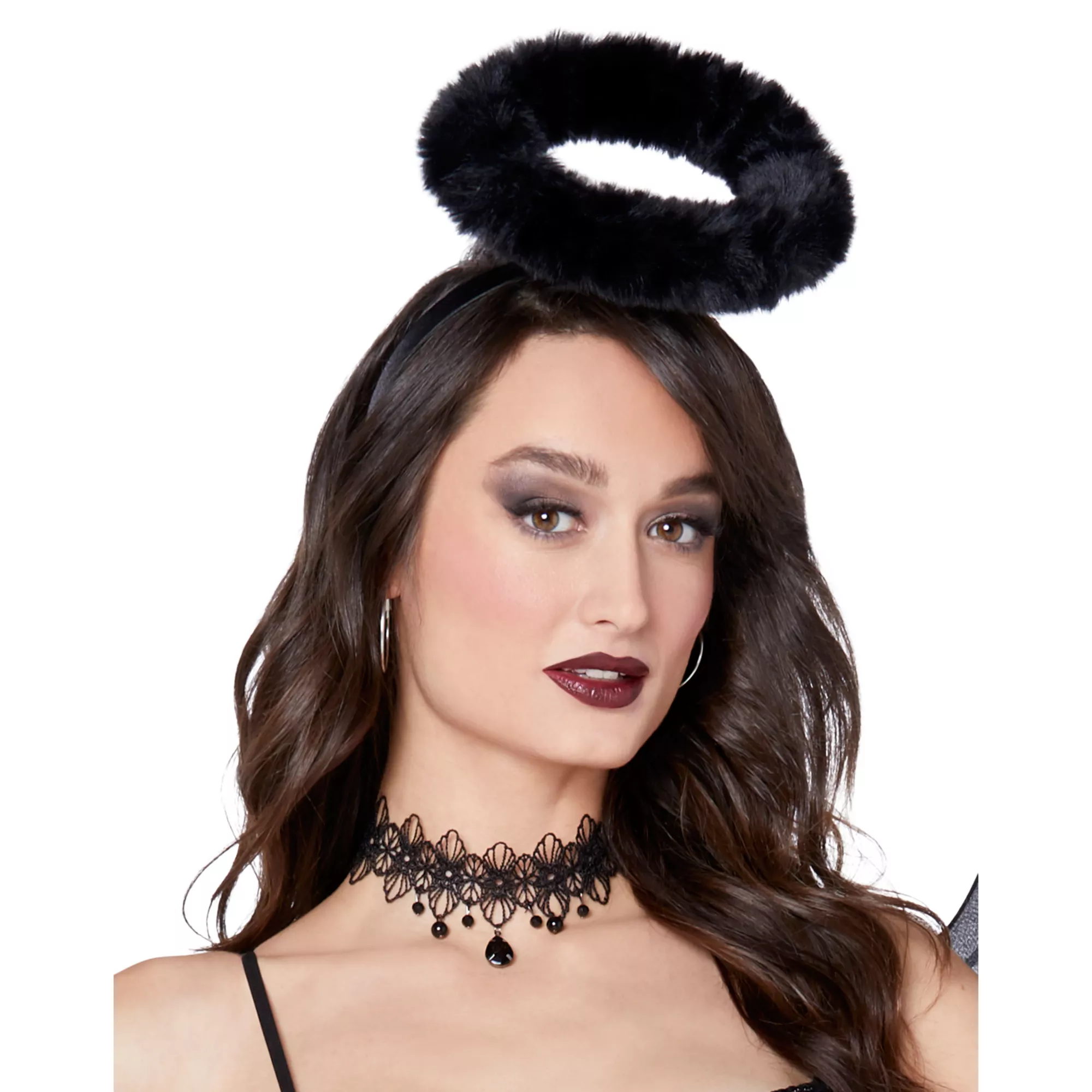Maybe you've fallen from grace, but at least you look amazing! This fallen angel costume kit includes a pull-on skirt with multiple layers of sheer, black tulle and an intricate filigree print. Sheer black wings add a dramatic flair to your angelic ensemble. Don't forget your halo! A headband with an attached soft, black halo adds luxe texture to this angel costume kit.