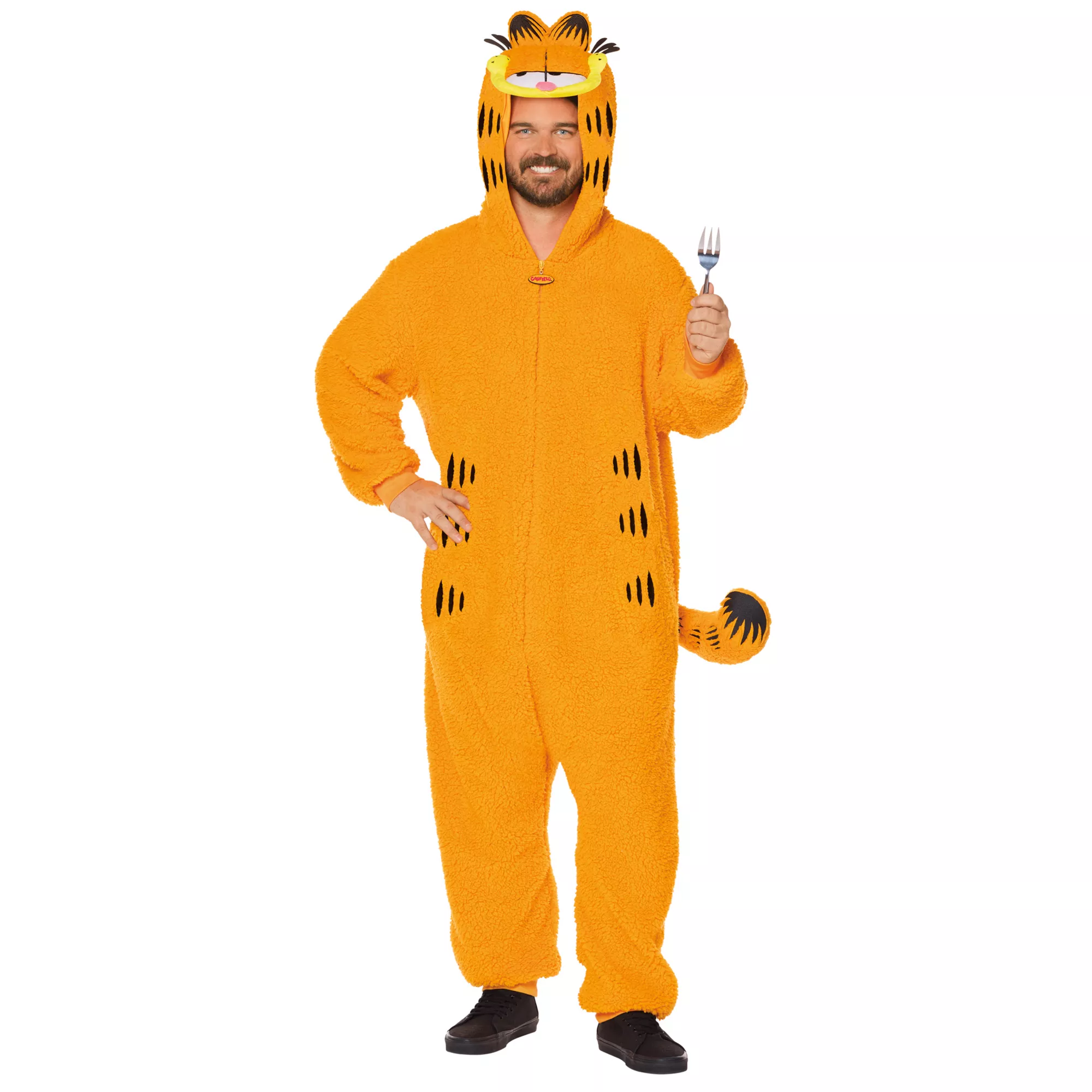 Love me, feed me, NEVER leave me! Dress up as your favorite lasagna-loving cat with this officially licensed Garfield Jumpsuit Costume.