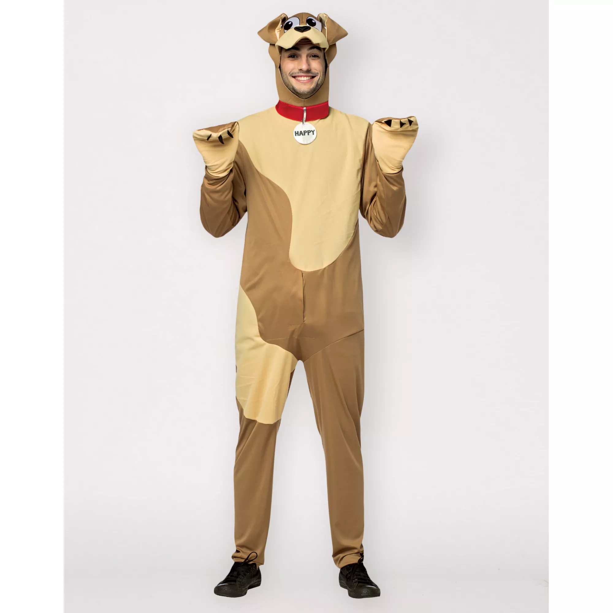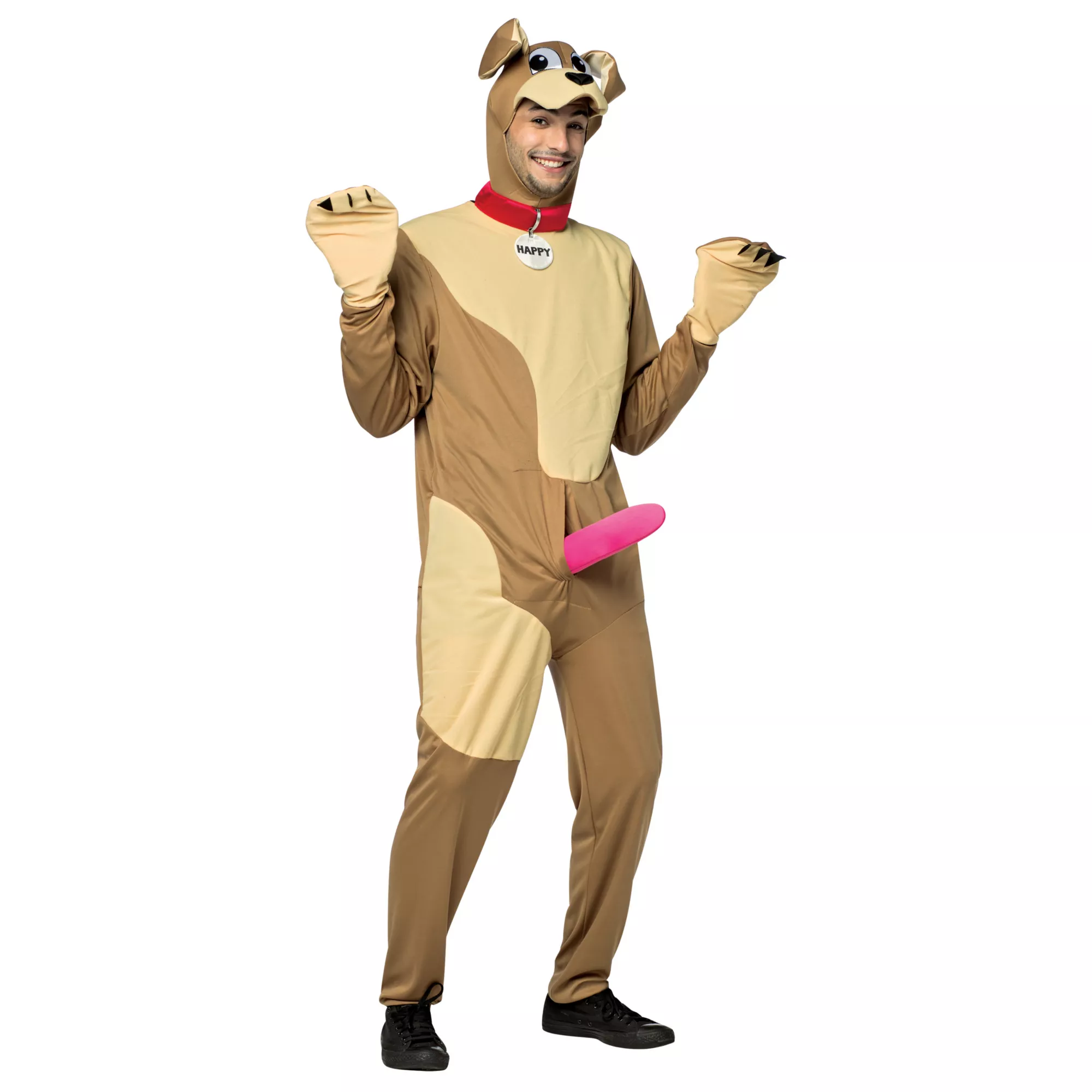 Woof! That is one happy dog! This hilarious costume is sure to grow on the competition this year! The hilarious one piece jumpsuit comes with a name tag and a hidden treat for anyone who throws him a bone! Included headpiece for a completed look.