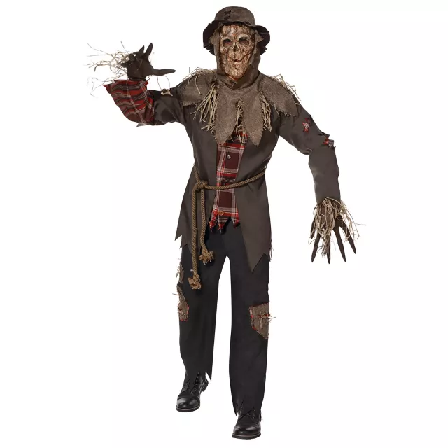 Put the "scare" in scarecrow when you dress up in this haunting scarecrow costume this Halloween! The 2-in-1 shirt features a plaid detail and tattered sleeves that will leave your onlookers shook! Add the rope belt, gloves, hat, pants and terrifying mask for a completed look that will have you in the running for scariest costume!