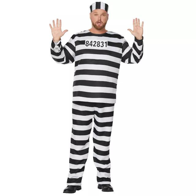 Uh oh. You've been caught! Get locked up this Halloween in this plus size jailbird costume. The costume features the signature stiped hat, pants, and shirt of a convict.