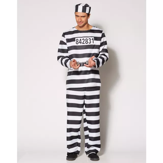 Uh oh. You've ben caught! Get locked up this Halloween in this jailbird costume. The costume features the signature stiped hat, pants, and shirt of convict. Lock em' up!