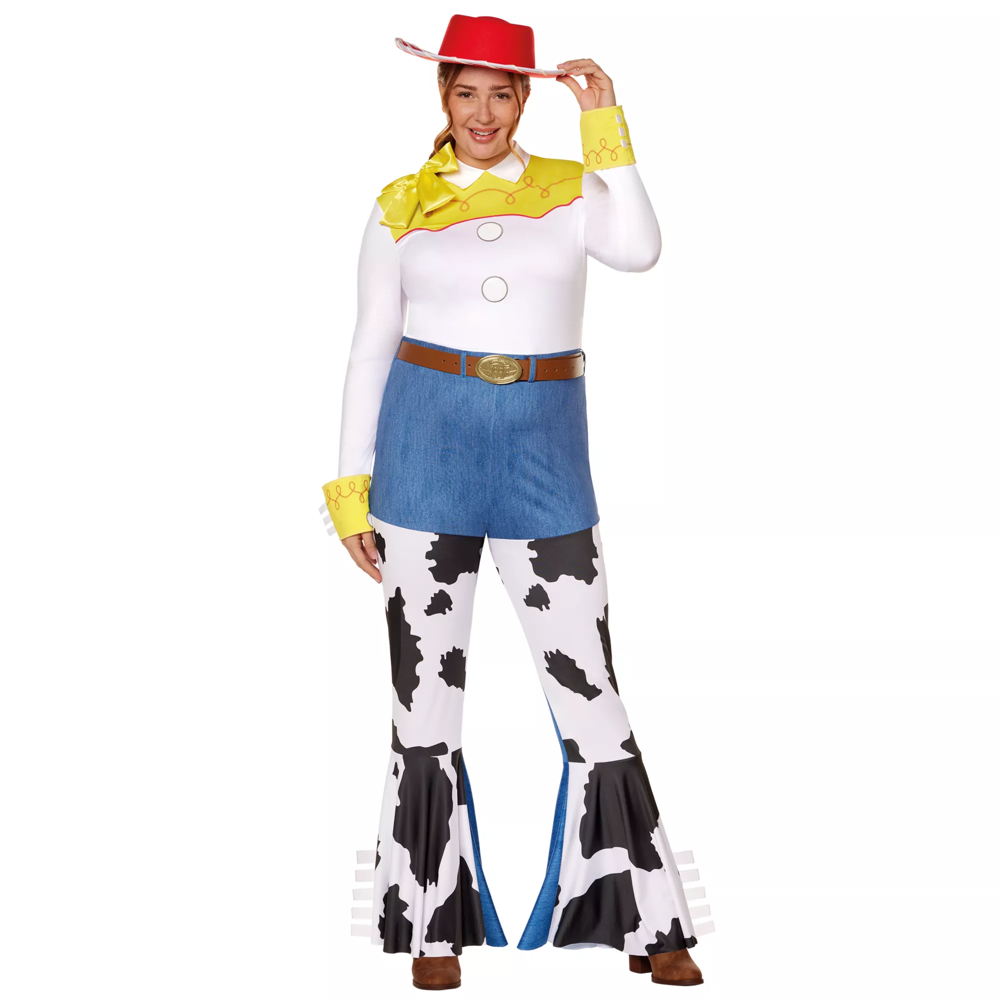 Yee-haw! Become everybody's favorite cowgirl when you put this officially licensed Jessie Costume on. Featuring a jumpsuit, belt, hat, and sticker, this costume provides everything you need to bring Toy Story to life!