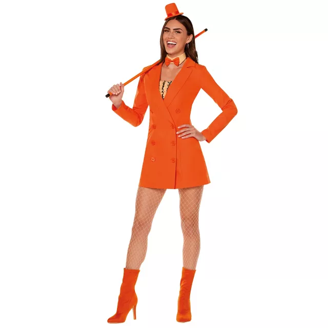 Step into the shoes of a truly lovable (and clueless) comedy character when you wear this officially licensed Lloyd Christmas Dress Costume. Inspired by the movie Dumb and Dumber, this set comes complete with a dress that's designed to resemble Lloyd's signature tuxedo, a collar with an attached bow tie, a mini top hat headband, and a cane. Put everything on and get ready to bring the laughs this Halloween!