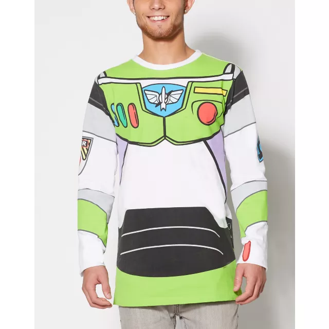 To infinity and beyond! Get ready to set your lasers from stun to kill in this officially licensed Buzz Lightyear Long Sleeve Shirt, featuring graphic versions of Buzz’s green space cadet armor including laser and jet pack buttons. You’ll be ready for any adventure, whether to space or just Pizza Planet!
