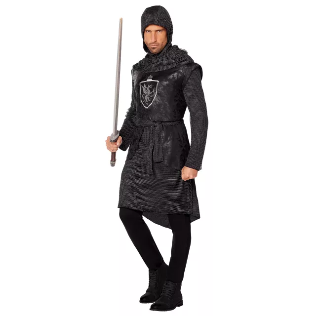 Hear ye, hear ye! Prove your honor and loyalty to the king this Halloween when you defend the castle dressed up in this Noble Knight Costume. Featuring a black tunic, hood and belt, this awesome medieval style costume will have you looking just like a brave knight from the medieval era and will have you looking great at any costume party.