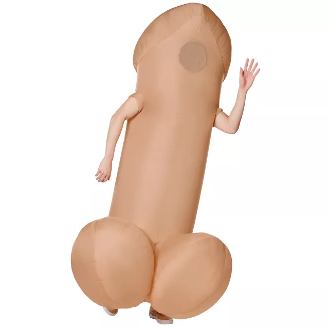 Do you have the balls to wear this inflatable penis costume? Turn yourself into a giant penis with this full-body inflatable penis suit. Featuring armholes, a sheer face panel, and an internal fan that keeps things erect, this costume is a guaranteed hit.