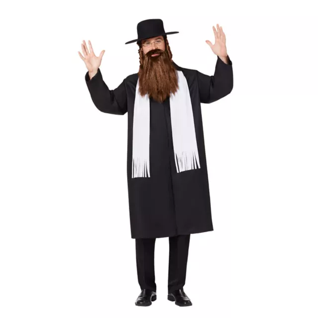 Crack up the crowd in this authentic looking Rabbi adult costume. Play it straight or play it funny, either way you'll have a great time in this classic costume complete with payis (that's the Jewish version of dreadlocks!)