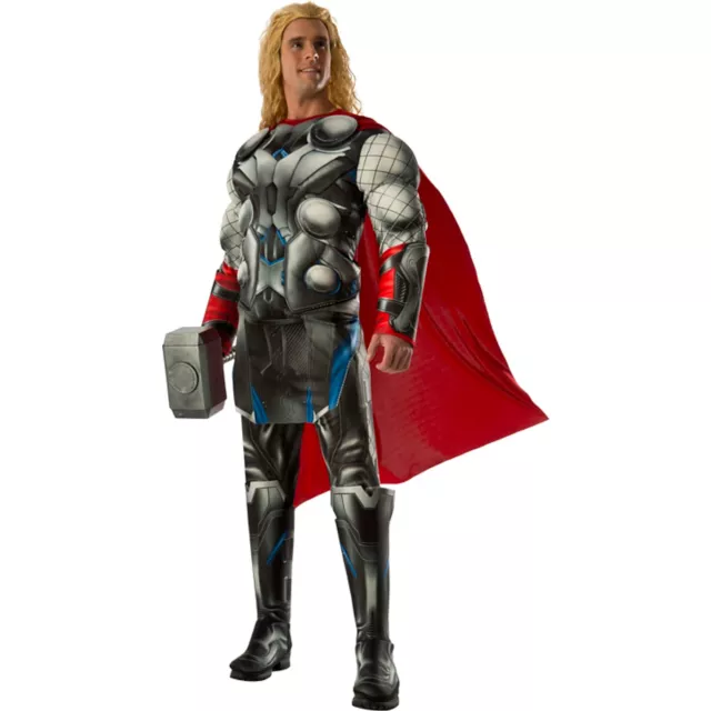 The Asgardian God of Thunder is back in Avengers: Age of Ultron and ready to protect Earth at any cost! It is time for the avengers to assemble and you can be ready for battle in this Avengers 2 Thor Deluxe Adult Costume! Features gray muscle chest top detailed in blue and black along the chest as well as red battle graphic wrist covers and a red cape. Also includes matching black pants with protective detailing and attached boot covers. Bring down Ultron with the power of Thor and be the hero you truly are in this costume!