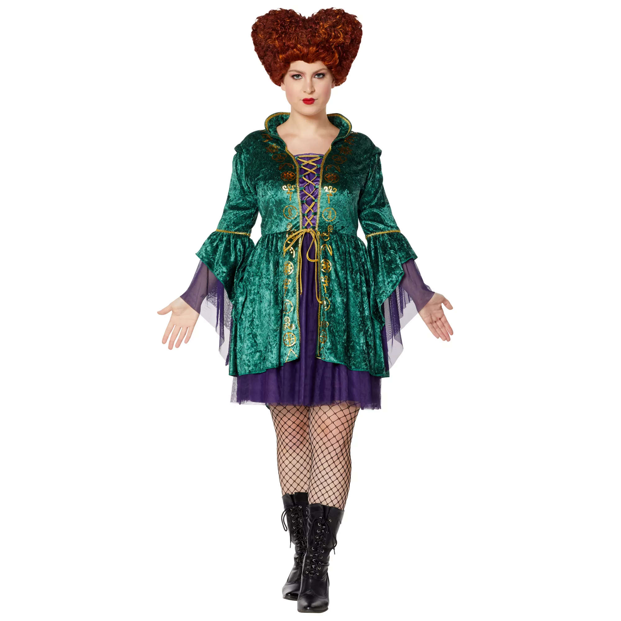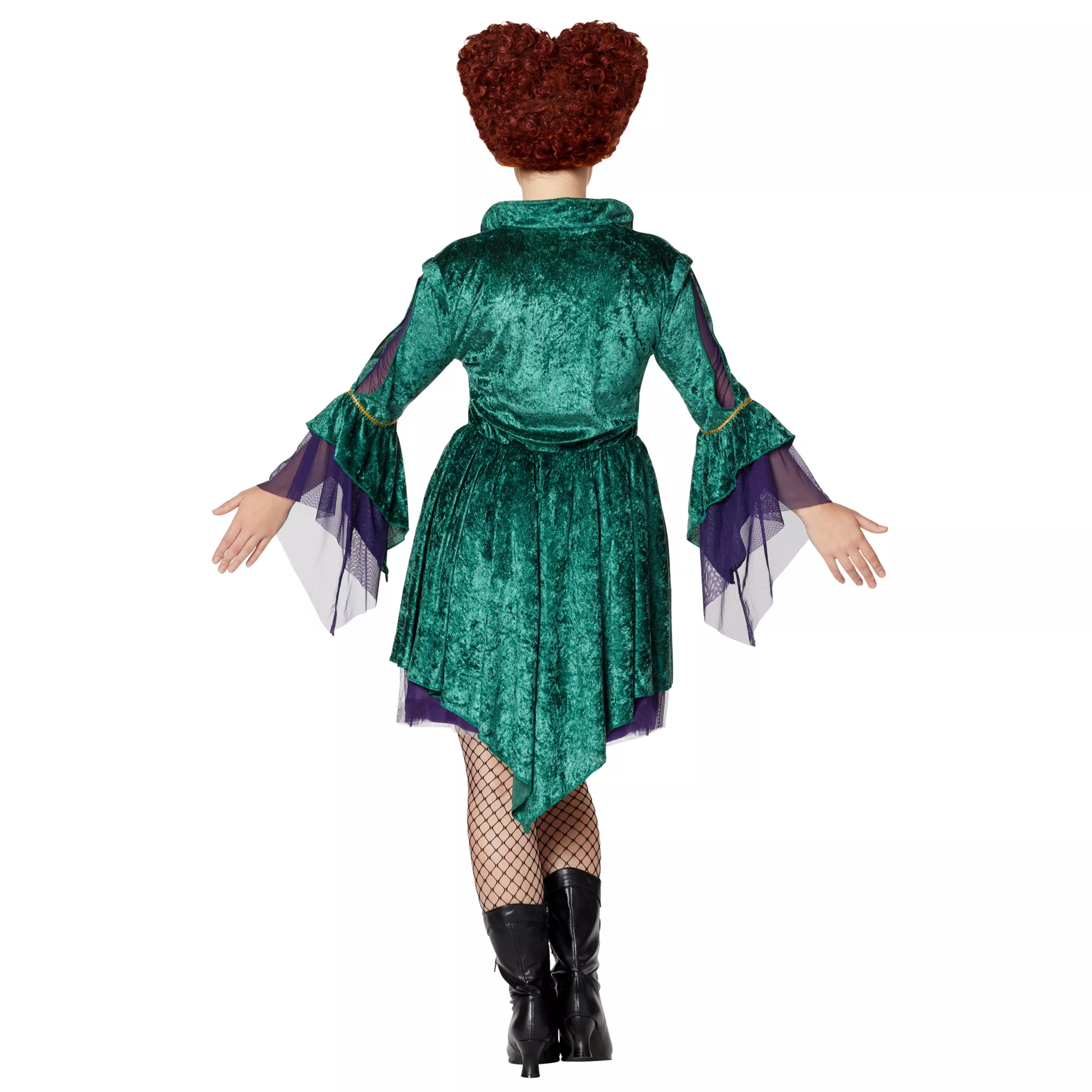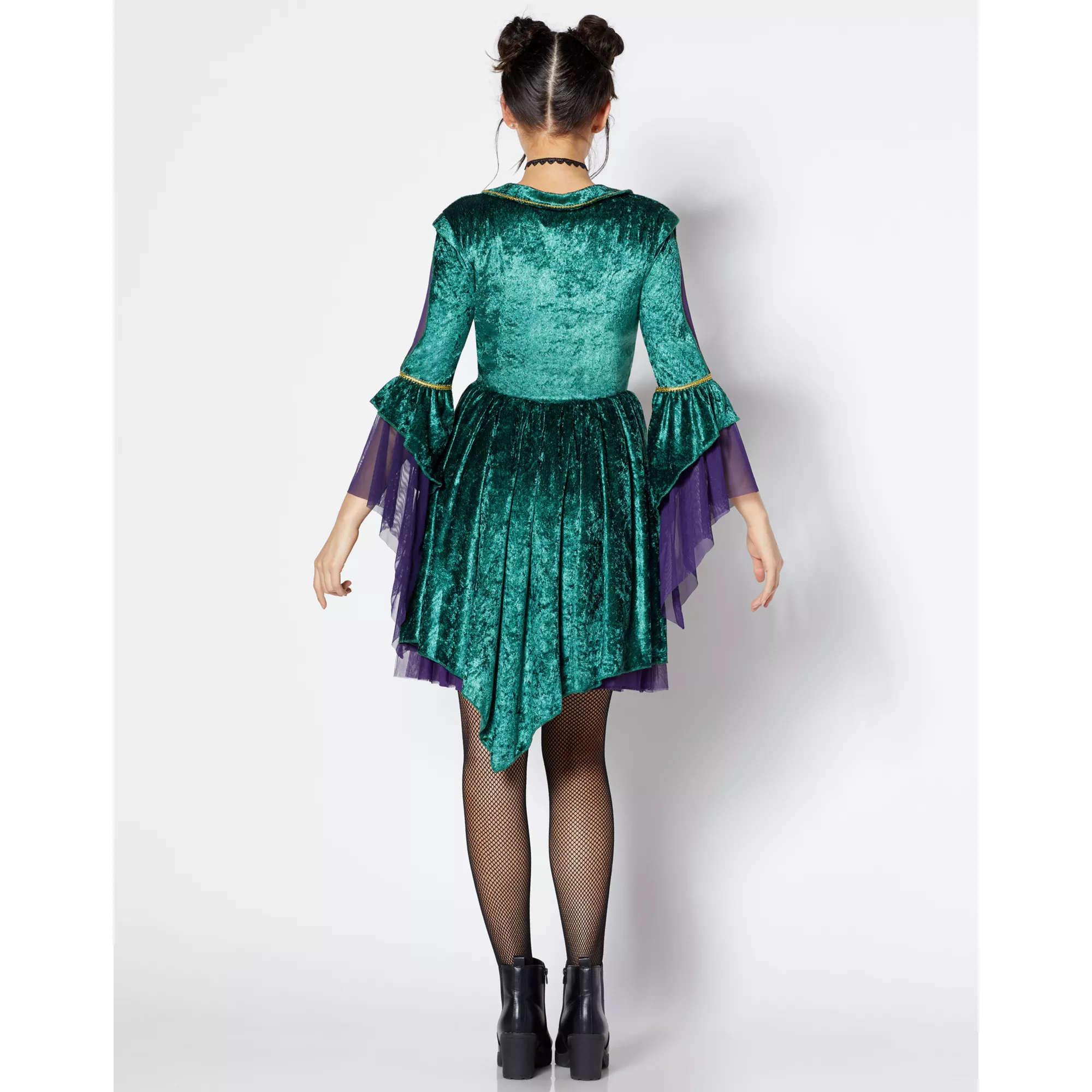 All the way from Salem comes this officially licensed Winifred Sanderson Dress, featured in Disney’s Hocus Pocus! This devilish dress displays brilliantly colored green and purple fabric adorned with gold detailing that only a real witch could pull off! Grab your bewitching sisters and get ready for an enchanting night of fright! Take a walk on the wicked side with this vexing villainess’s dress, available exclusively at Spirit Halloween.