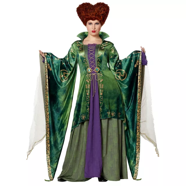 From our exclusive signature collection. The vexing villainess from Disney’s Hocus Pocus returns in this officially licensed plus size costume, available exclusively at Spirit Halloween. The eldest of the three infamous Sanderson Sisters, Winifred leads the trio and uses her magical powers for villainy… How will you use yours? Conjure up some fun this Halloween with this deluxe costume, featuring Winifred’s signature green and purple ensemble!