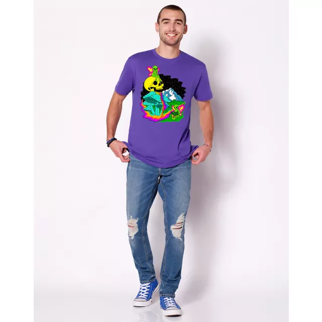 GREETINGS, EARTHLINGS. Live in alien world with this stylish and colorful tee.