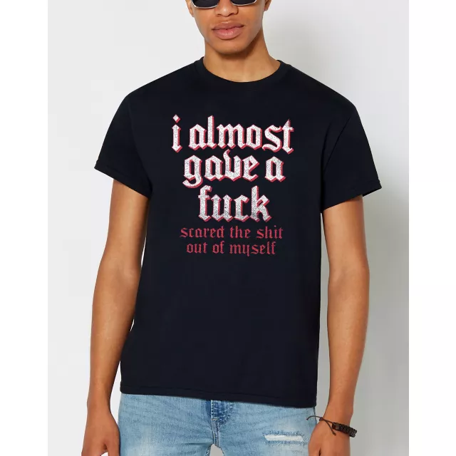 Make everyone laugh when you put on this I Almost Gave a Fuck t shirt! This funny graphic tee is the perfect way to make sure anyone who sees you knows how you really feel.