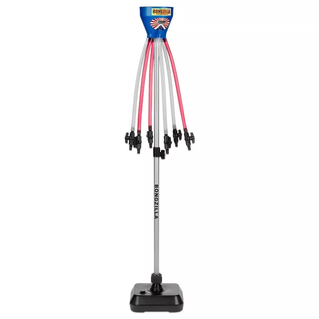 NEW & IMPROVED: Want to make your patriotic party even better? Set up this American flag bongzilla that holds a 12 pack of beer and will have all of your friends party rockin'! The NEW push-button ON/OFF valve is the perfect way to control your level of fun.