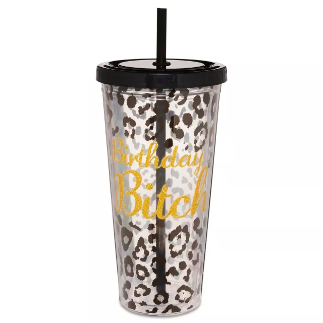 Animal Print Birthday Bitch Cup with Straw - 20 oz.