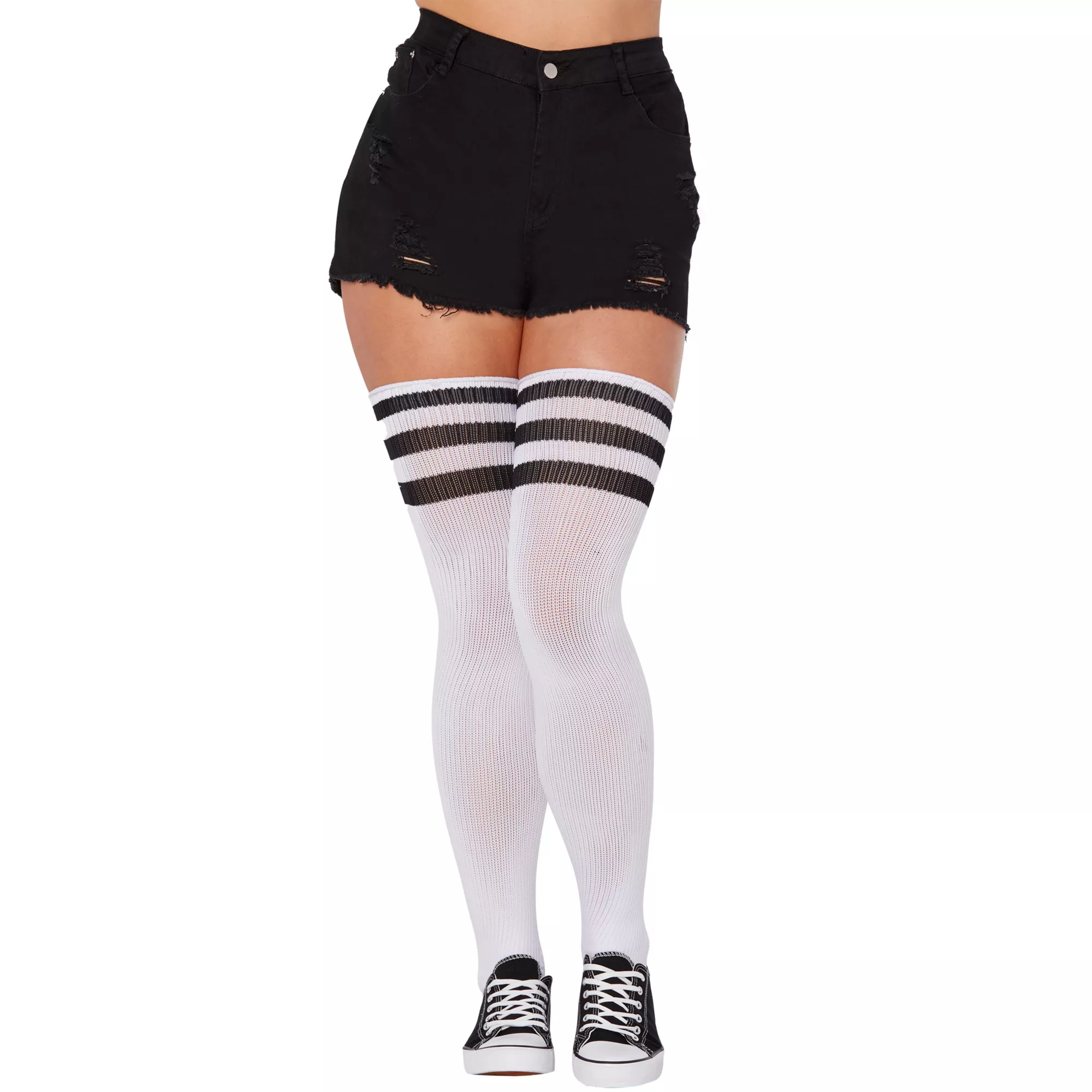 Enhance any look with these fun Athletic Stripe Thigh High Socks! With a black stripe at the top of these white socks, they're both cute and sexy. Wear them with your favorite skirt or dress and you're sure to be totally stylish.
