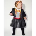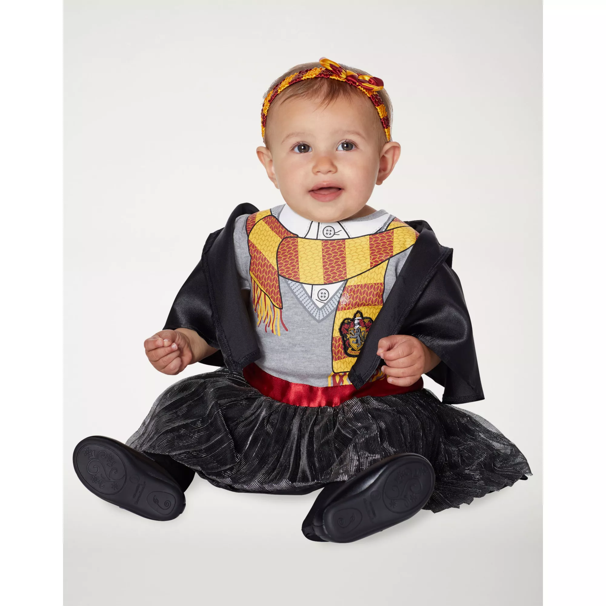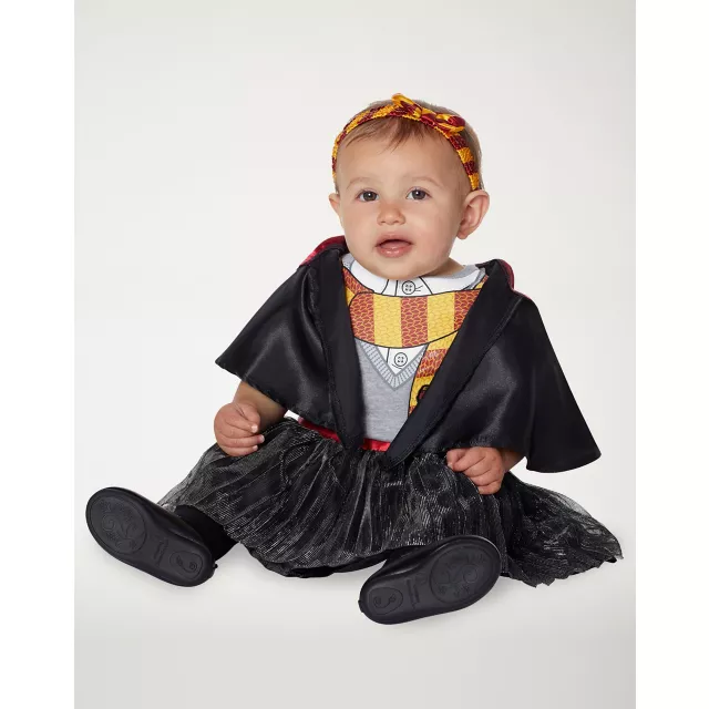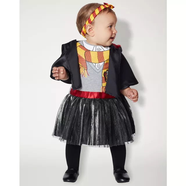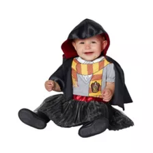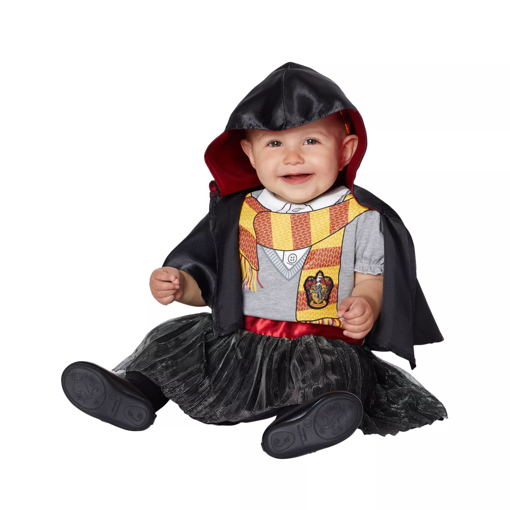 Earn some points for house Gryffindor when you dress your child up in this officially licensed Harry Potter dress. This Harry Potter dress features a black skirt, a gray vest top, and a striped scarf to closely resemble the uniform of house Gryffindor. A black robe is also attached to the costume to completely finish the Harry Potter transformation. Your baby will love becoming “the boy who lived” this Halloween, but look out for some baby Voldemorts that may be on the loose causing some trouble!