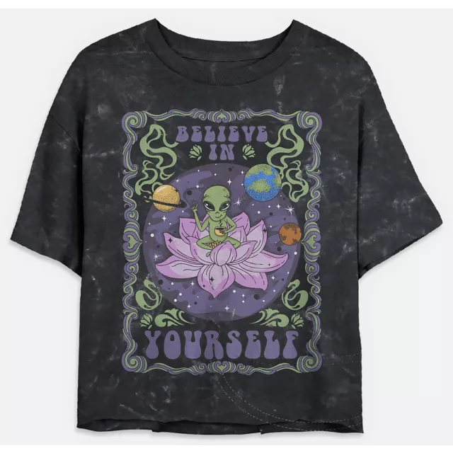 Bring some out-of-this-world style to your wardrobe with this believe in yourself cropped t shirt! This funny graphic tee is sure to be a popular look whenever you wear it!