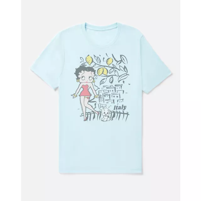 You'll look like the ultimate Italian cutie in this officially licensed Betty Boop Italy T Shirt. This adorable tee features Betty Boop and her dog Pudgy under a lemon tree!