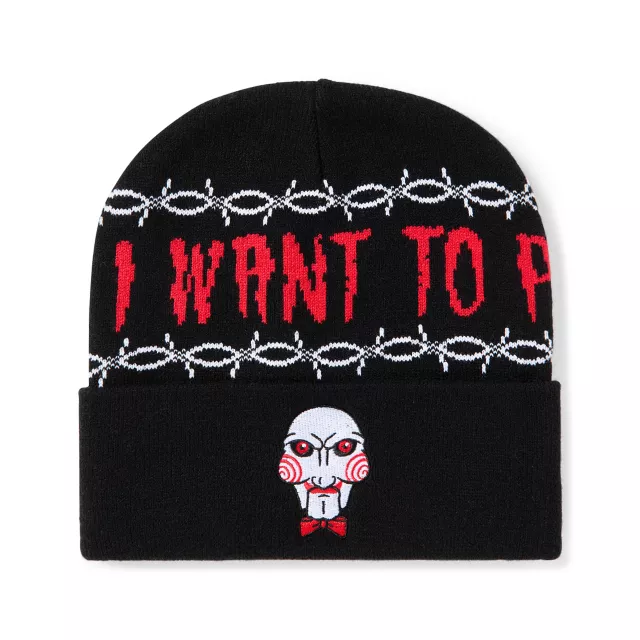 Rep your favorite horror movie with this Saw Billy I Want to Play cuff beanie hat! This horror-tastic hat is the perfect look for any San fan!