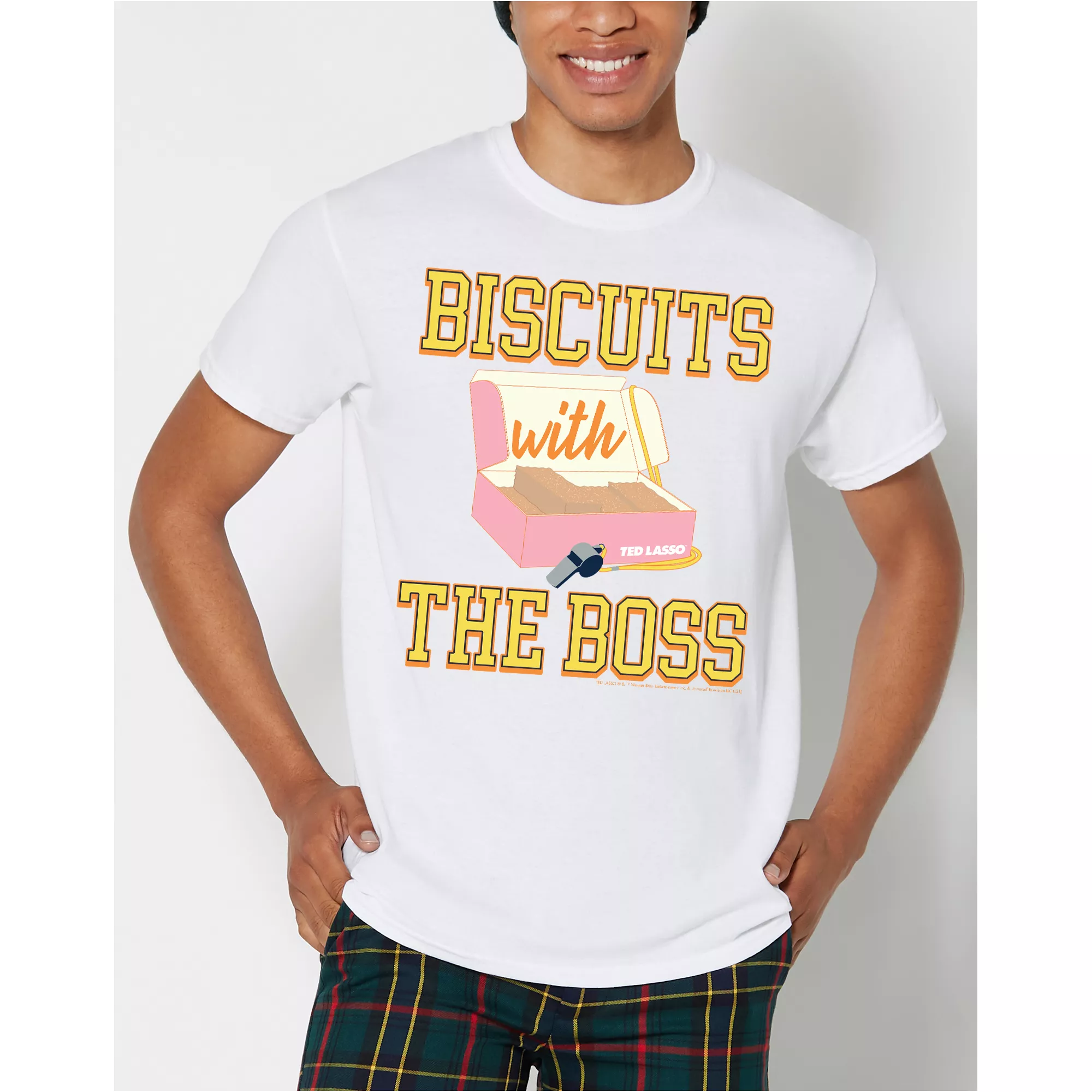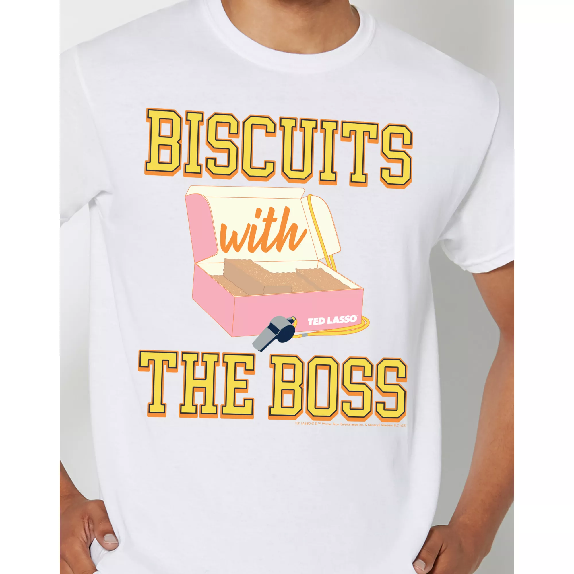 Any true Ted Lasso fan will love adding this officially licensed Biscuits with the Boss T Shirt to their casual look. Rock this tee at your next casual outing and you'll always be showing love for your favorite show.
