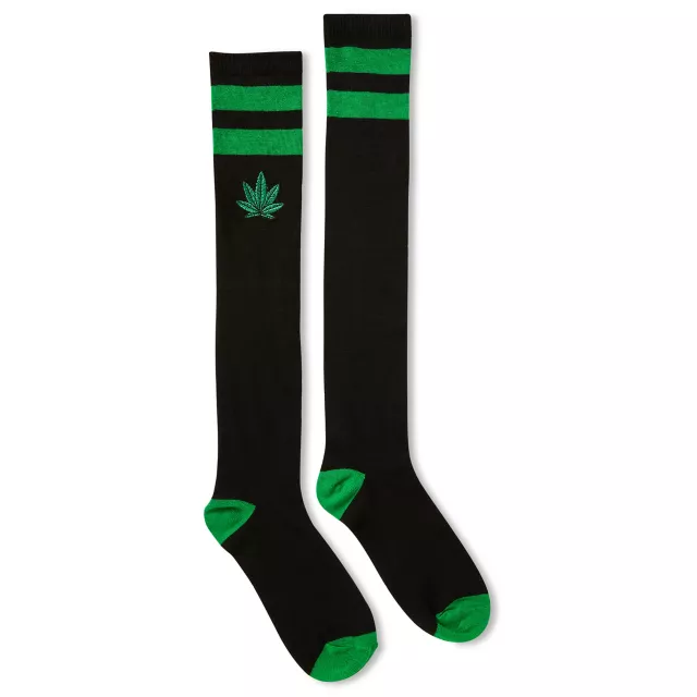 Embrace your inner stoner and add the perfect accent to your favorite outfit when you rock these Black and Green Weed Leaf Knee High Socks. Prepare to elevate your vibes and your style!