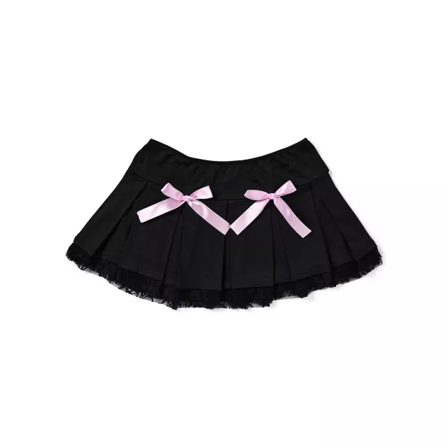 Strut your stuff with confidence when you sport this exclusive Black and Pink Bow Pleated Micro Skirt! With its flirty pleating, lace trim, pink satin bow accents, and cheeky design, this micro skirt is the perfect blend of sassy and sweet..