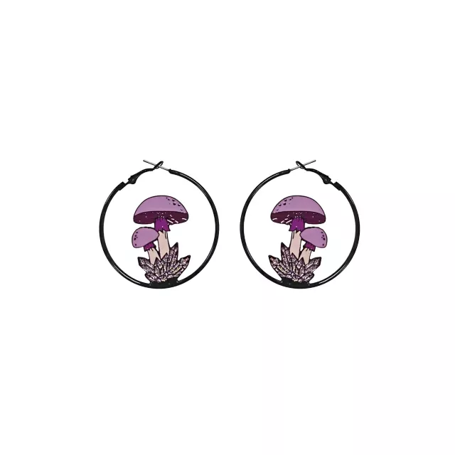 Black and Purple Mushroom Hoop Earrings - 18 Gauge