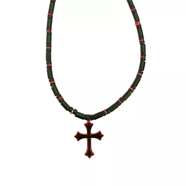 Black and Red Beaded Cross Necklace