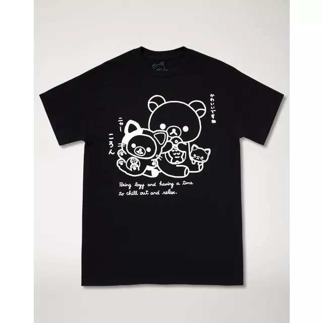 Be lazy and have time to chill out and relax when you slip into our officially licensed Black and White Lazy Rilakkuma T Shirt! This tee features the iconic Rilakumma bear, who loves to relax and cuddle. Snuggle up for a good time in this cute bear tee.